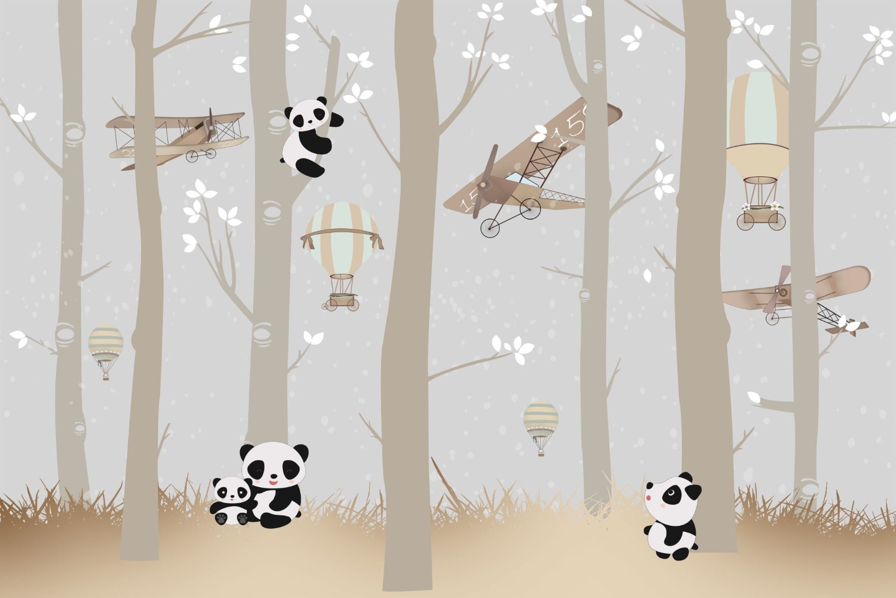 Cute pandas climbing trees mural