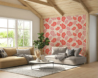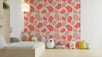 Enhance your interiors with this botanical-inspired wallpaper. Featuring cutout leaf shapes in coral and blush pink against a creamy background, it brings a touch of warmth to any space. The use of coral creates a visually appealing display that blends well with various décor styles. Use this wallpaper for walls in the dining room or living room to create a cozy atmosphere.