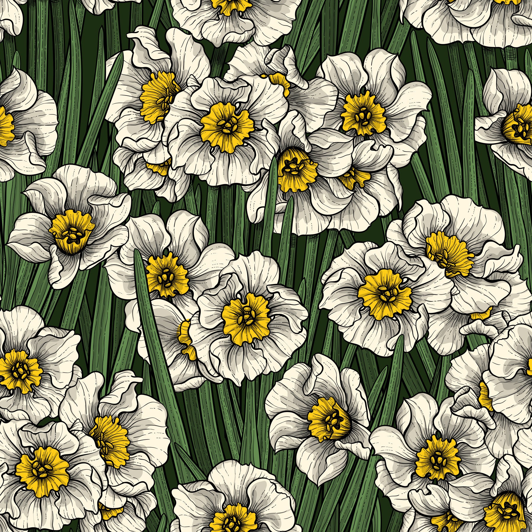 Hand-drawn pattern with daffodil flowers.