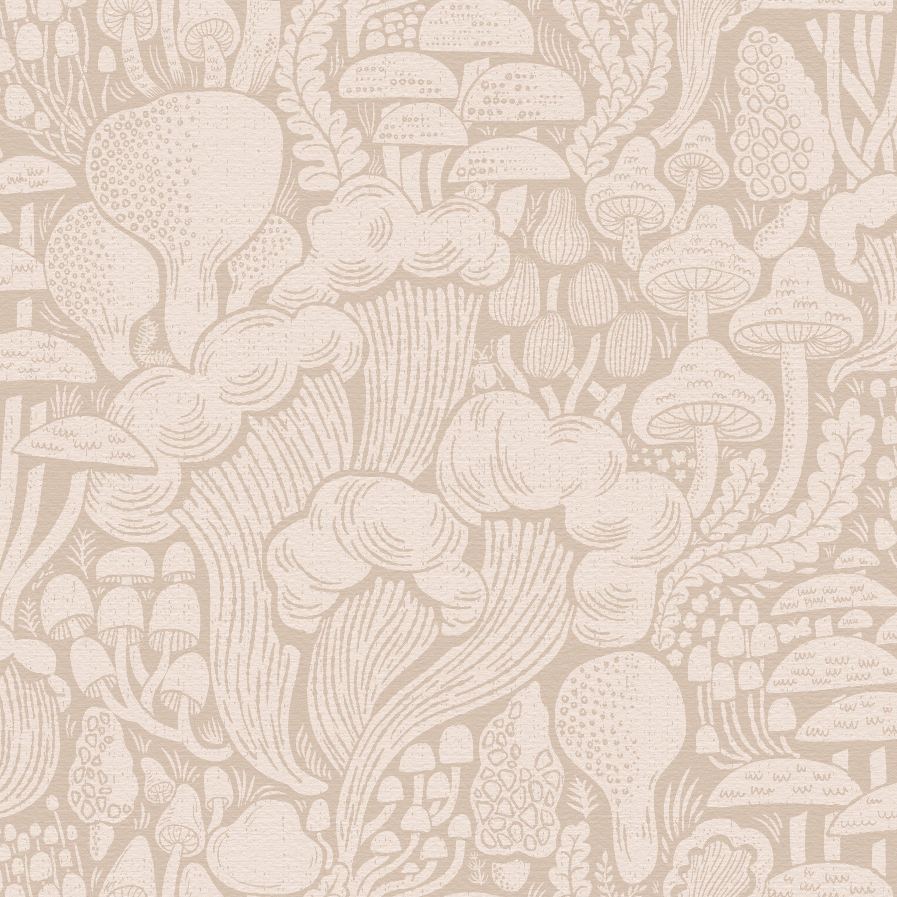 Embrace the ethereal beauty of this 'Dagg-Toned Fungi Forest Silhouettes' wallpaper. A delicate palette of beige and off-white creates a serene atmosphere, showcasing stylized mushroom silhouettes in various shapes and sizes. The textured background adds depth and a touch of rustic charm, reminiscent of a linocut print. Intricate details within each fungal form, alongside subtly rendered foliage, evoke a sense of mystery and quiet wonder within a hidden forest. This wallpaper is perfect for adding a touch of whimsical nature to any digital device.