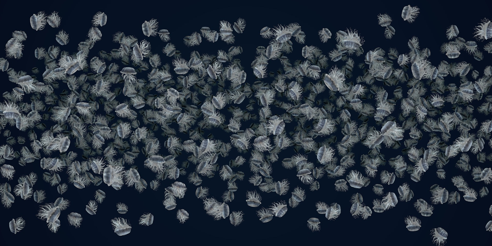Plunge into the depths of the ocean with our Dancing Jellyfish White on Dark Blue Wallpaper Mural. This mesmerizing design captures the ethereal beauty of jellyfish as they dance through the dark blue waters, creating a sense of mystery and wonder. Perfect for adding a touch of the ocean's enigmatic charm to your space, the contrasting colors and fluid movements of the jellyfish offer a captivating and soothing visual experience. Ideal for those fascinated by the mysteries of the deep sea, this dark blue wallpaper invites you to drift away into the tranquil abyss of marine elegance.