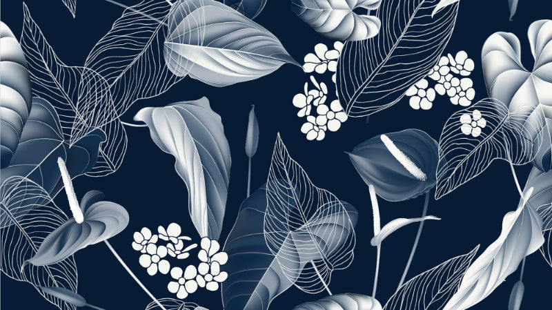 Anthurium and leaves dark blue wallpaper