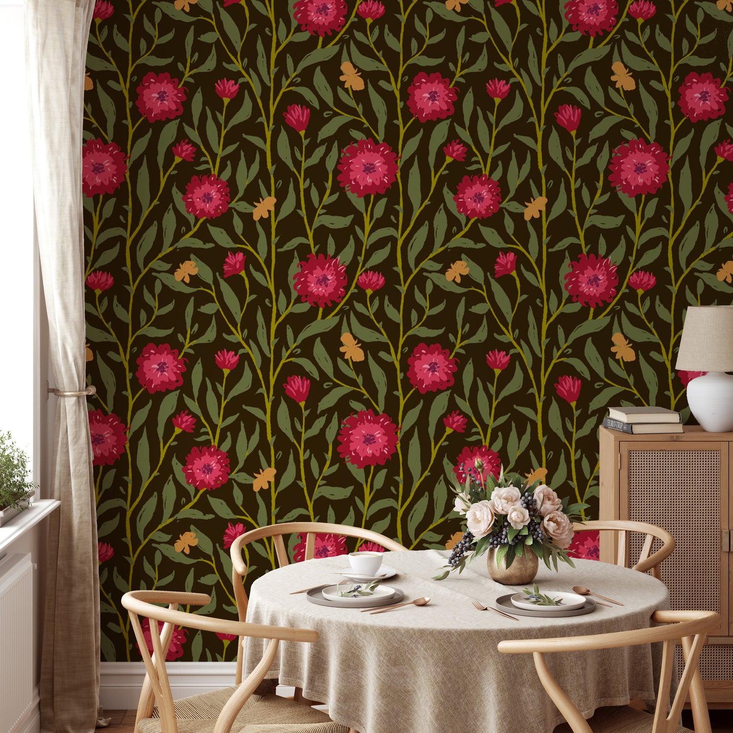 Dark Magenta Spring Trellis Wallpaper Beautiful and intricate in design with its deep magenta hue, it serves as a powerful front-and-center image complementing the overall feel of your space. Great for anyone to dress their interiors with bold new colors, Get comfortable in this style of hall wall paint or room bed. Stylish and built to last, this wallpaper is the only way to make your walls look so great. Spend your money on our Renters Friendly peel and stick wallpaper and create a striking décor piece in the comfort of your home.