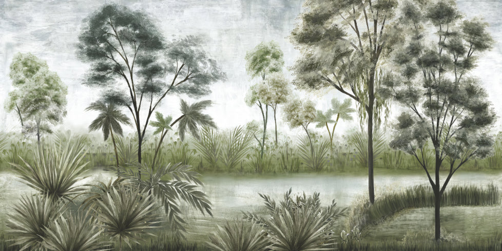Tranquil forest tones wall mural design