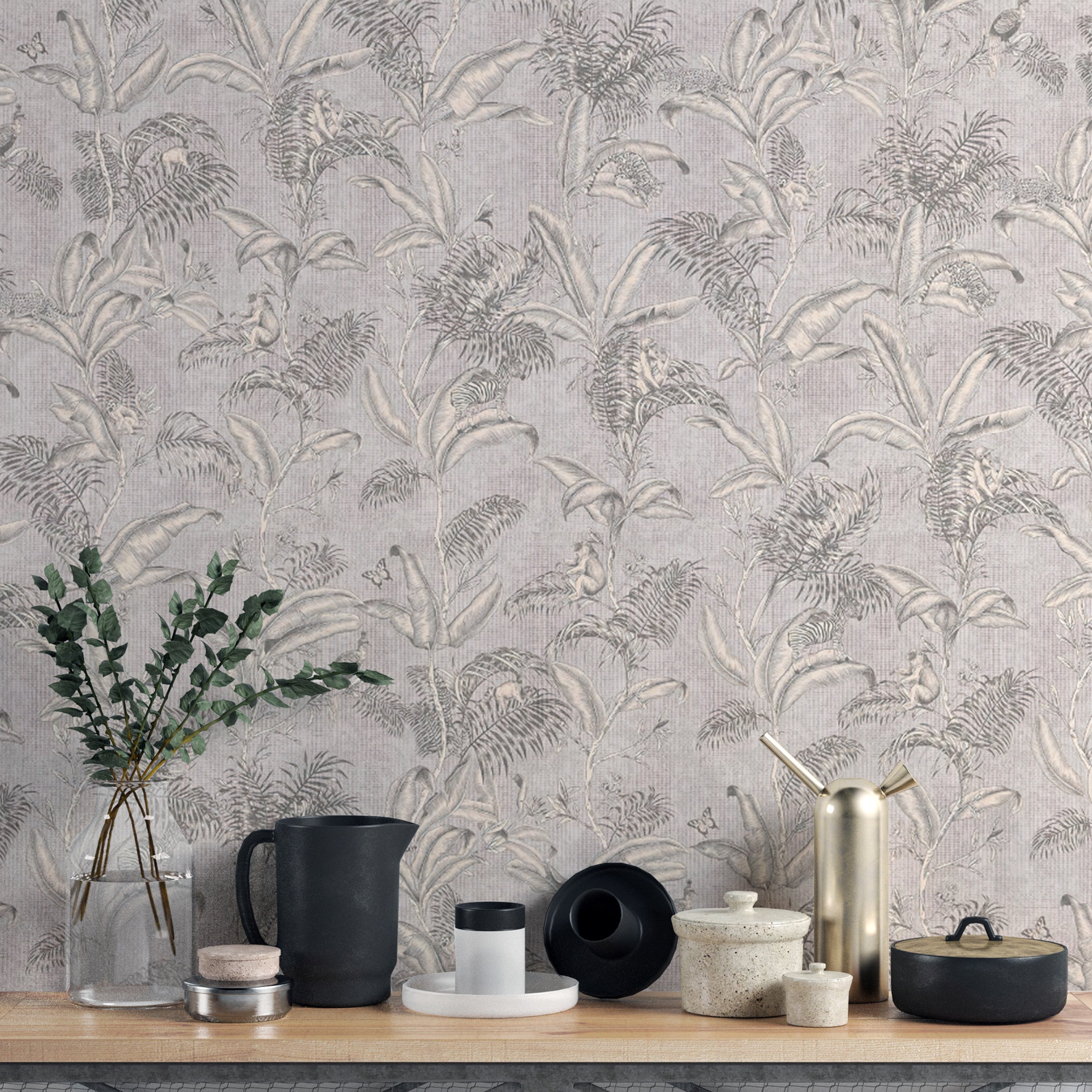 Stylish Darwin Gray Tropical Foliage Wallpaper for Homes
