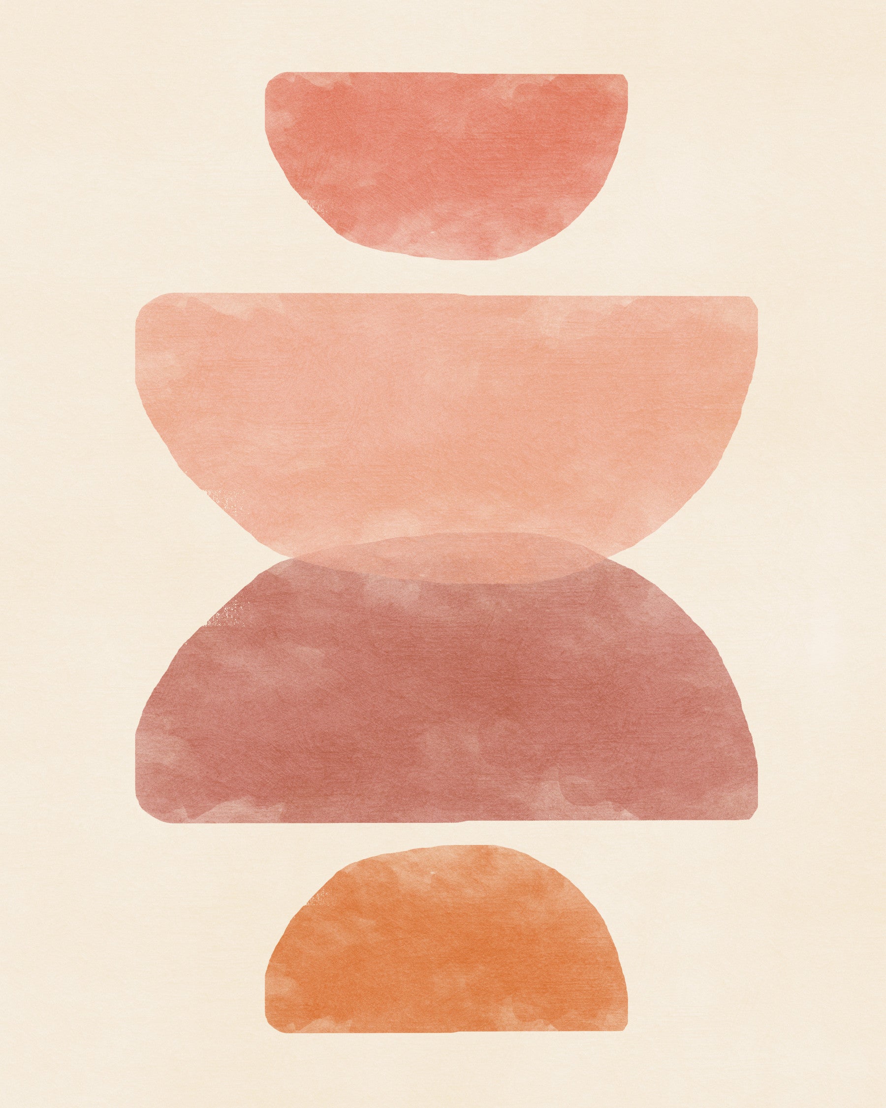 This abstract wallpaper evokes the warm, serene feeling of a desert sunset. The soft watercolor washes in earthy tones of peach, terracotta, and brown create a calming and sophisticated atmosphere. The simple, stacked semicircle shapes are both minimalist and visually engaging, adding a touch of modern elegance to any space. Perfect for bedrooms, living rooms, or home offices seeking a tranquil and stylish backdrop.