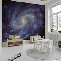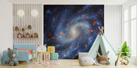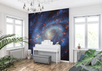 Bring the wonder of the universe into your home with this captivating depiction of a far-off galaxy. The design features a detailed, swirling starfield in varying shades of blue and red against a deep black backdrop. This wallpaper for walls adds depth and dimension to any room, making it perfect for a bedroom, living room, or study. The expansive and intricate pattern provides a sense of limitless space, creating a serene yet stimulating atmosphere. Elevate your walls with this awe-inspiring cosmic view.