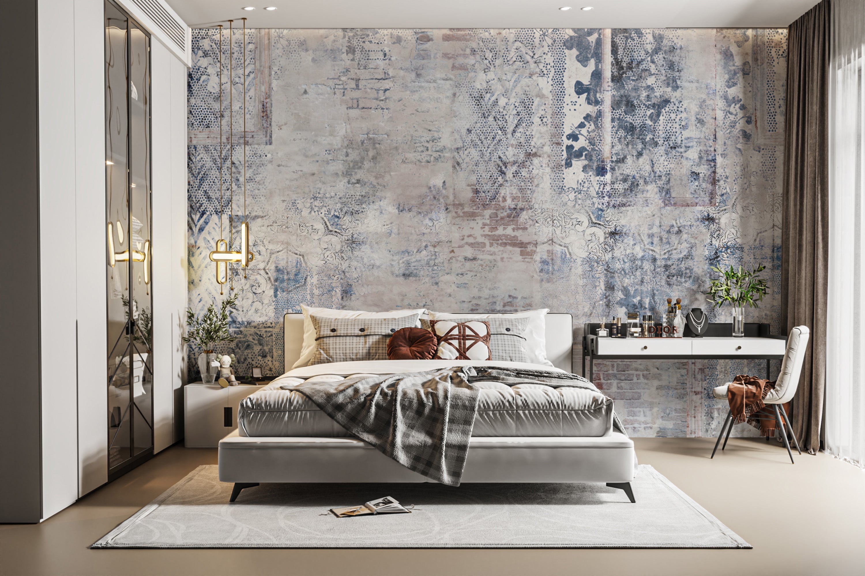 Distressed vintage wallpapers combined with the timeless floral patterns juxtapose to merge with rustic brick textures. Its layered design enhances a room of any sort. This subtle blue accent wallpaper will add all the personality and is fabulous on living room walls, bedroom walls, or accent walls. Its weathered finish can add a very unique, sophisticated aesthetic that every home deserves. Order your distressed vintage wallpaper today and enjoy Free Shipping for hassle-free shopping.