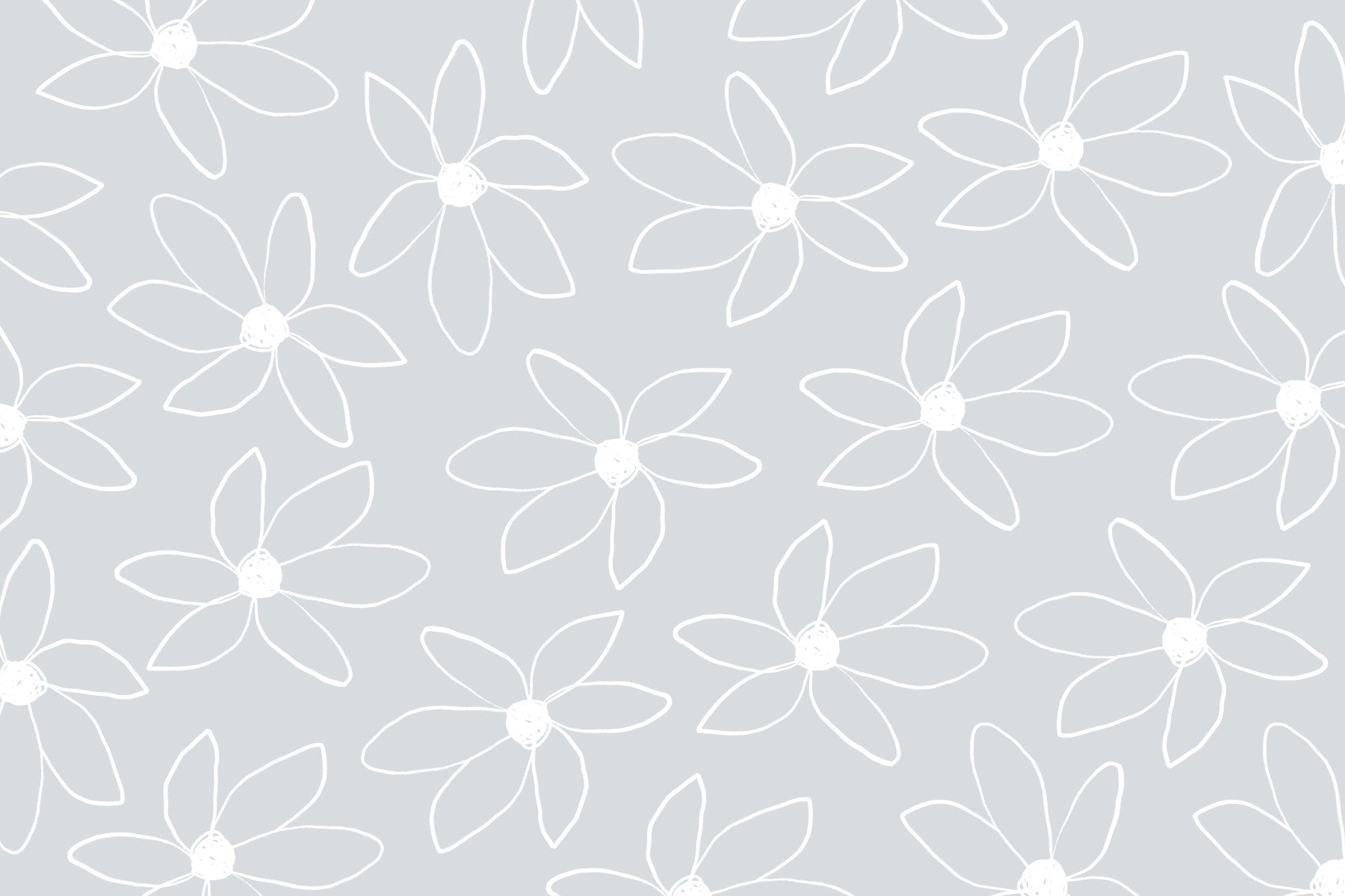 Bring a lighthearted touch to your home with this doodle-style floral wallpaper. The simple white outlines of the flowers create a whimsical effect against the soft gray background. It works well in nurseries, bedrooms, or craft rooms. This pattern provides a playful, yet refined, design. Make this wallpaper for walls part of your interior design, especially where you need a touch of cheer. Its simple and airy feel lightens spaces.