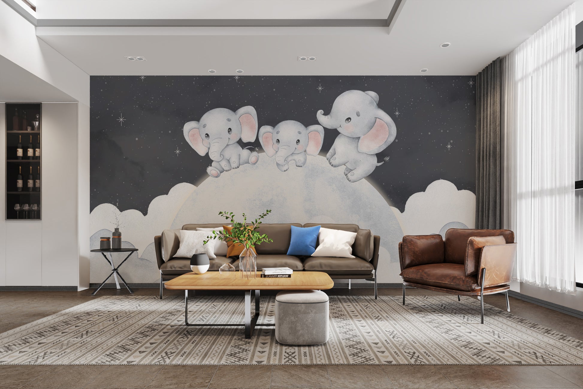 Starry night elephant wallpaper for cozy nurseries