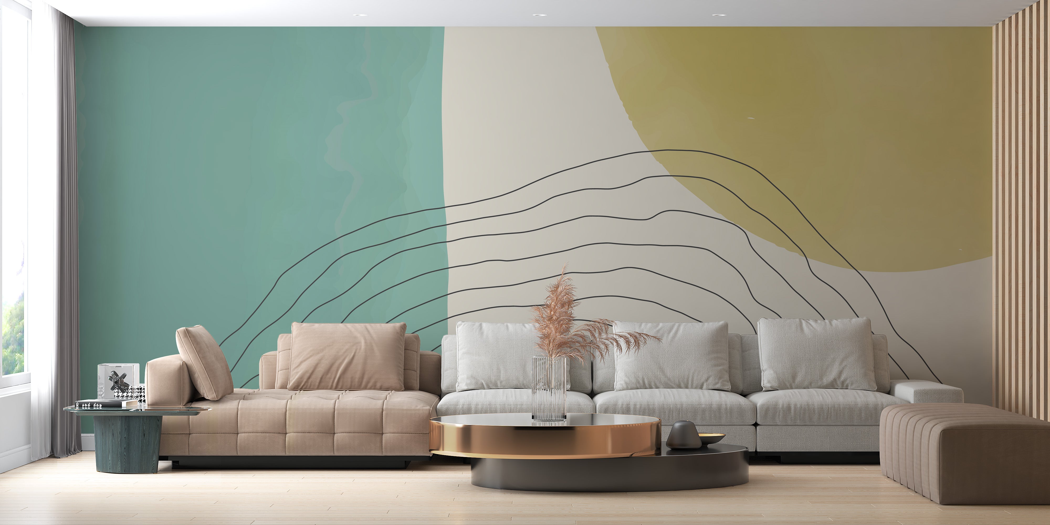 Revamp your living space with our Dual Tone Watercolor Abstract Wallpaper Mural, a vibrant addition to our exclusive collection. This mural stands out with its lively abstract design, featuring a captivating blend of aqua blue and olive green in geometric patterns. Each hand-painted stroke brings a unique flair to the mural, making it a true piece of art for your walls.