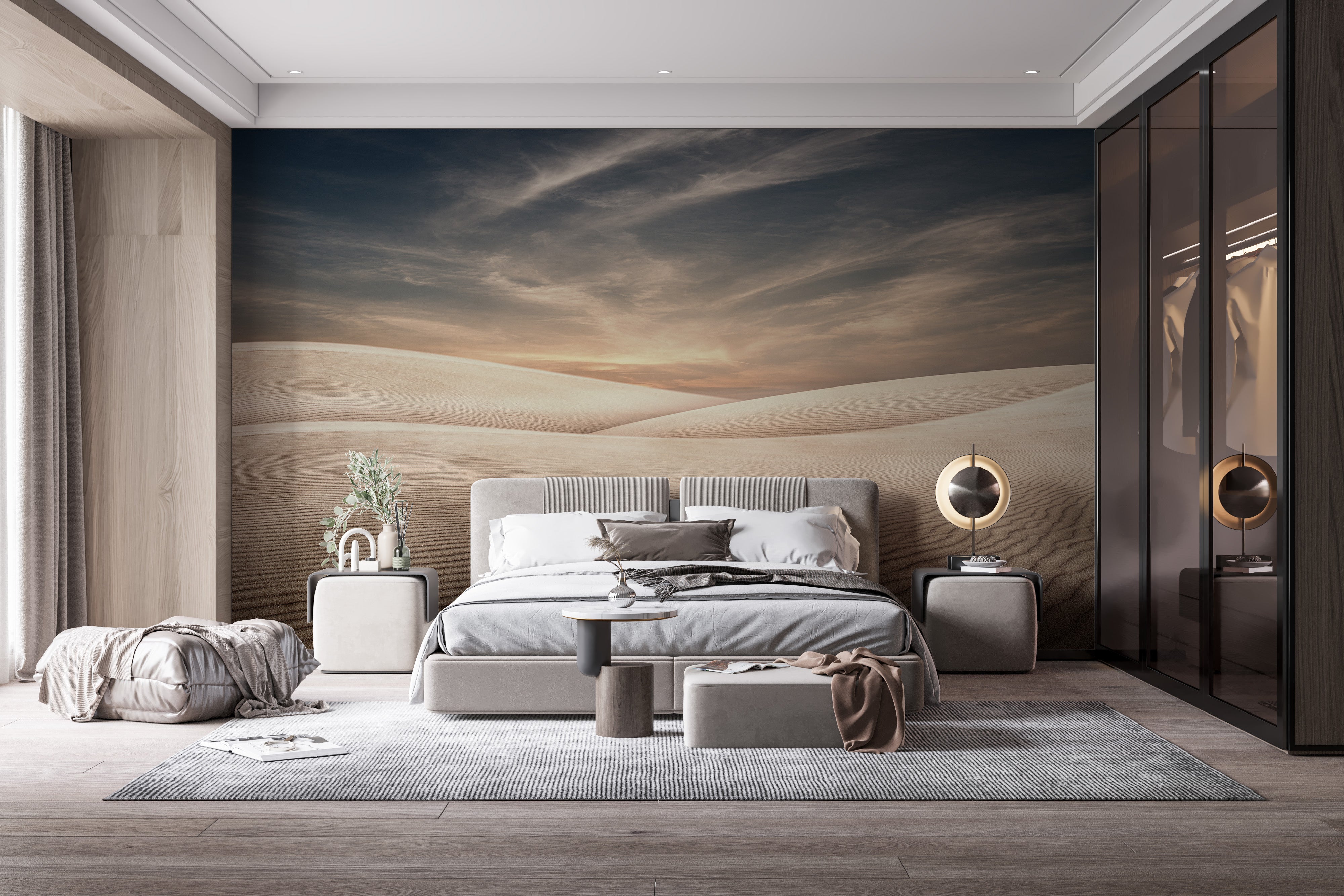 Serene desert mural with endless dunes