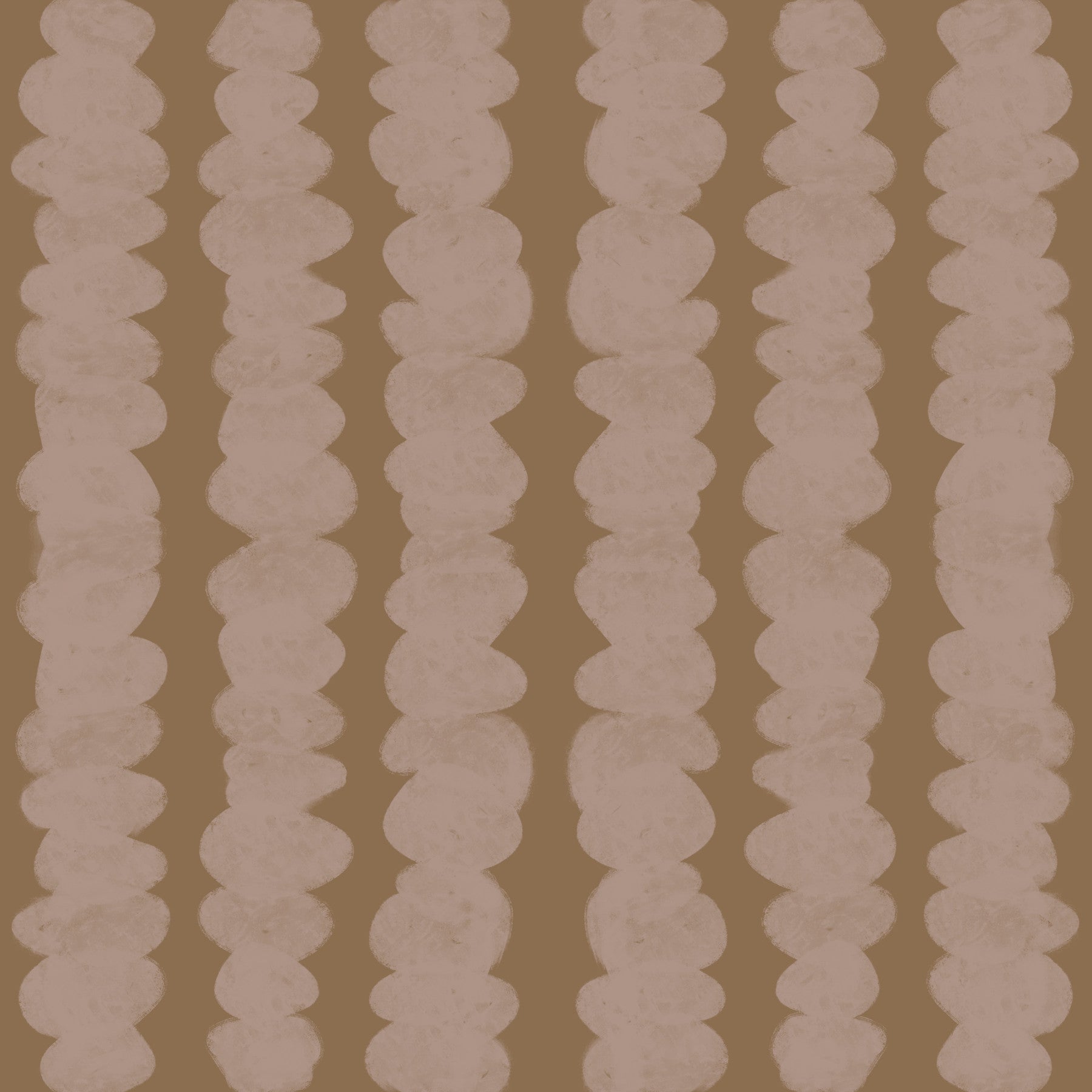 Embrace the subtle charm of 'Earthen Columns,' a wallpaper featuring a repeating pattern of stacked, organic forms in muted brown and beige tones. The design evokes a sense of rustic simplicity, perfect for creating a warm and inviting atmosphere in any room. The textured brushstroke effect adds depth and visual interest, making this a versatile backdrop for both modern and traditional interiors. Infuse your space with a touch of understated elegance and organic appeal with this delightful wallpaper.