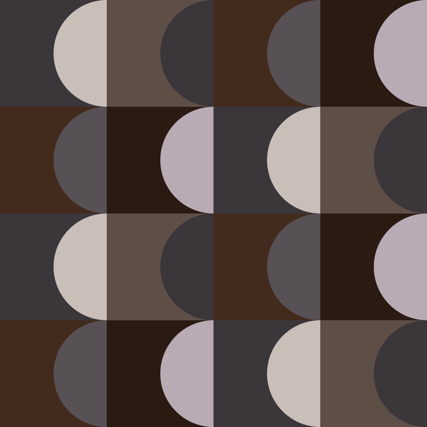 Inspired by nature's subtle beauty, 'Earthen Echoes' presents a wallpaper design of interlocking semi-circles in earthy tones. The interplay of dark browns, soft creams, and muted grays creates a balanced aesthetic that is both modern and calming. Its geometric precision and soothing palette make it ideal for spaces requiring a touch of refined simplicity. The seamless pattern ensures a cohesive and harmonious look, perfect for a serene bedroom, a tranquil study, or a stylish living area.