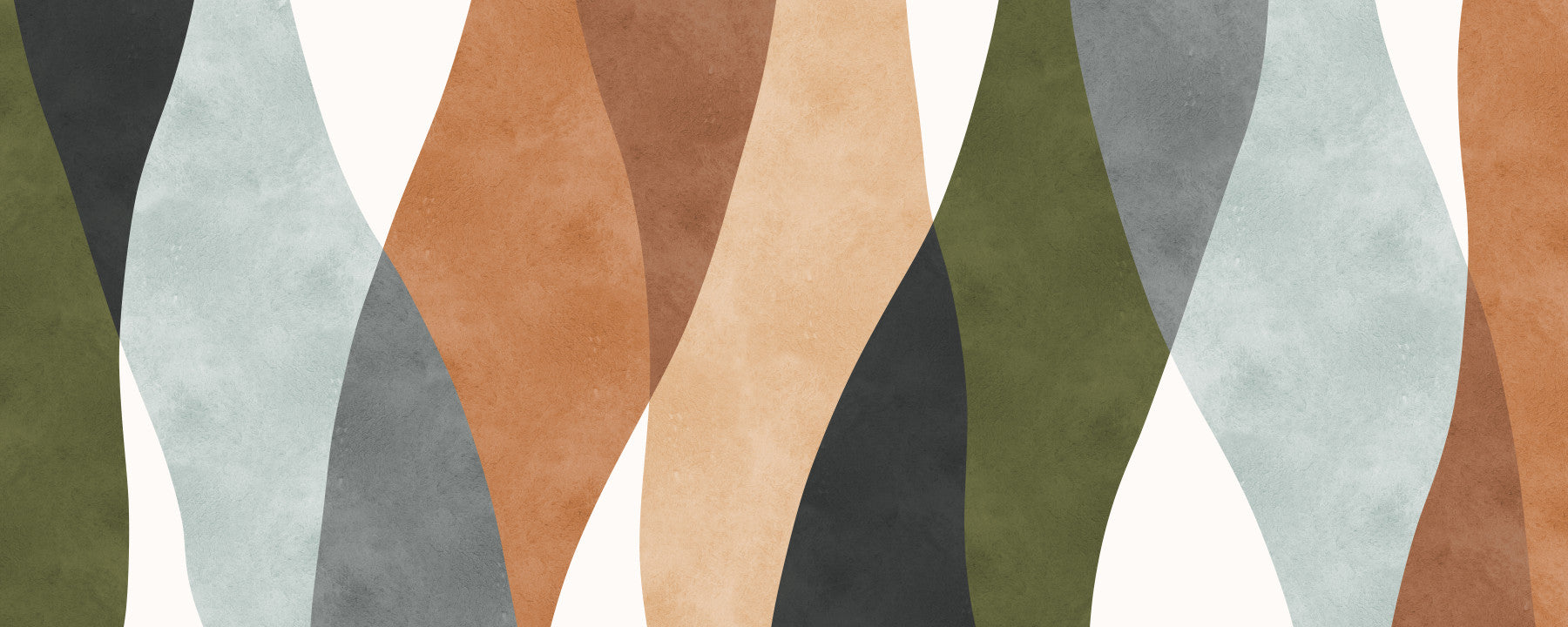 Invite a sense of modern calm with this wallpaper for walls, showcasing a series of overlapping arcs. Muted greens, oranges, and blues meet in this captivating design, adding depth and movement. The organic shapes and earthy tones provide a sophisticated touch, making it ideal for a living room, bedroom, or office space. This pattern complements interior spaces, creating a soothing backdrop.