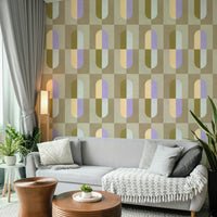 Embrace tranquility with this wallpaper's earthy color palette. The design seamlessly blends soft beige, light taupe, dusty lavender, and subtle olive green, creating a sense of calm and warmth. Geometric shapes add a modern touch, while the textured background offers visual depth and interest. This wallpaper is perfect for creating a relaxing and inviting atmosphere in any room, bringing a touch of nature-inspired serenity to your space. Its versatility makes it ideal for living rooms, bedrooms, or even home offices.