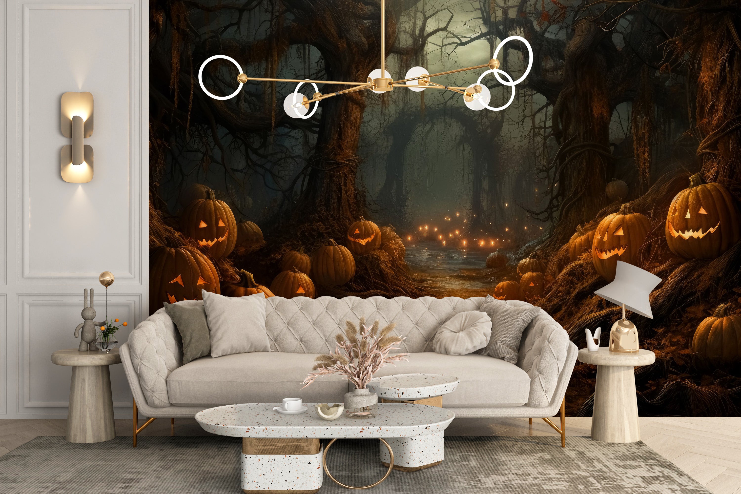 Eerie Pumpkin Forest Silhouette Wallpaper mural