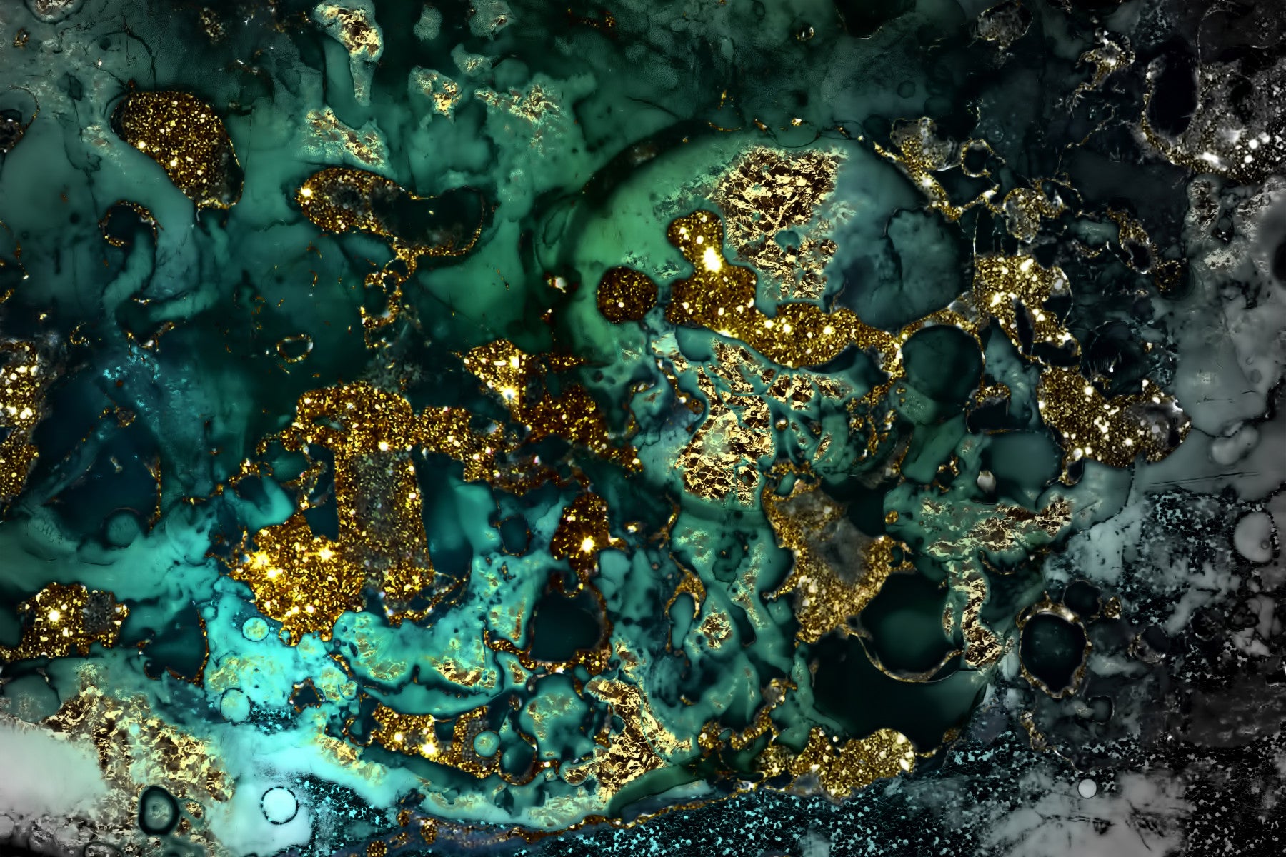 Transform your walls with this unique abstract design. Emerald hues blend with streaks of shimmering gold, crafting an opulent atmosphere. The intricate patterns add depth and interest, perfect for a modern living space or a stylish bedroom. This wallpaper for walls brings a sense of sophistication to any room. Embrace the allure of this design to elevate your interior with its captivating blend of color and texture.