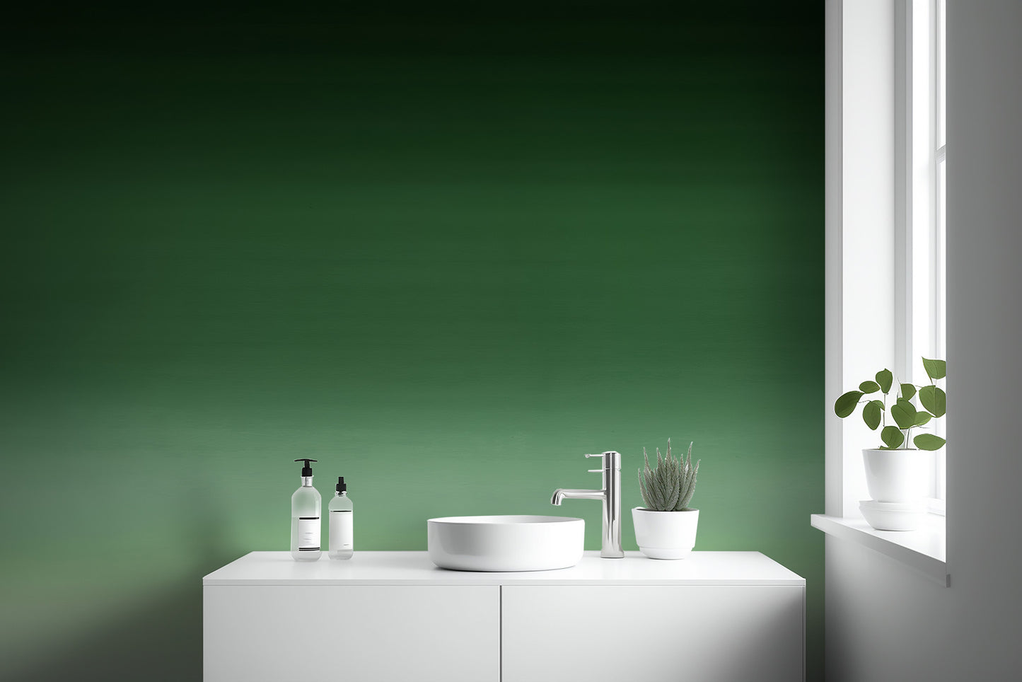 Emerald whisper gradient wallpaper for a serene bathroom oasis.
