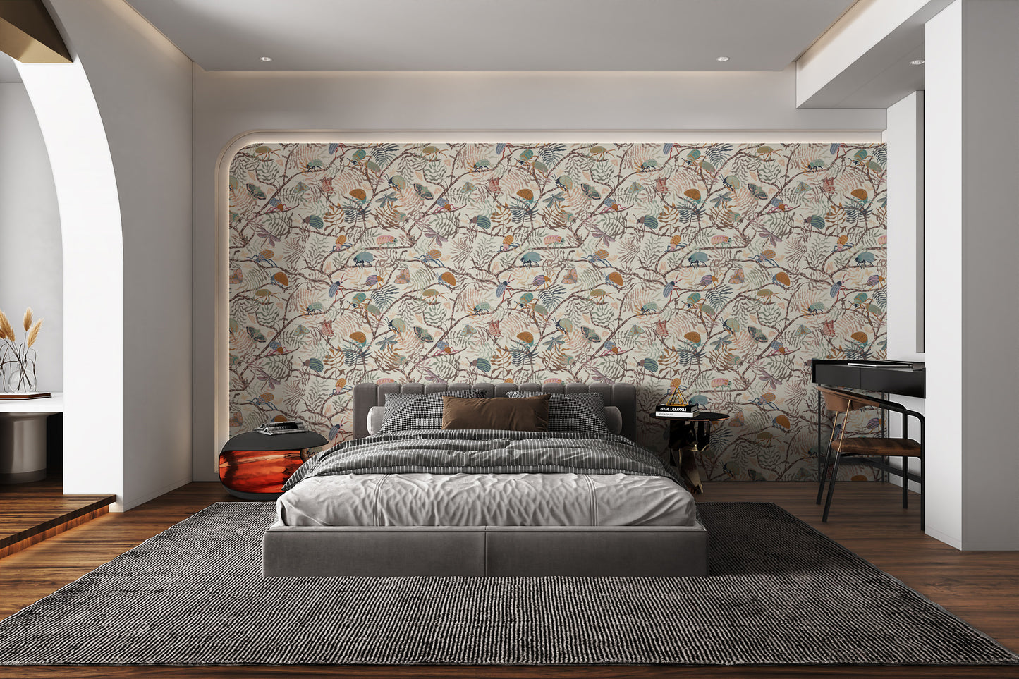 Delve into a realm where fantasy flutters on walls, with enchanted forest whimsy wallpaper. A tapestry of nature's own artistry, it beckons you into a woodland dance of delicate wings and rustling leaves. Amidst this forest wallpaper, creatures great and small, rendered in harmonious hues, offer a daily escape to an enchanting nook of your choosing. Each brush stroke celebrates the wild's whimsical side, turning the mundane into the magical. Invite the outdoors in with a seamless meld of flora and fauna. This is not just wallpaper it's a window to a whimsical forest fantasy.