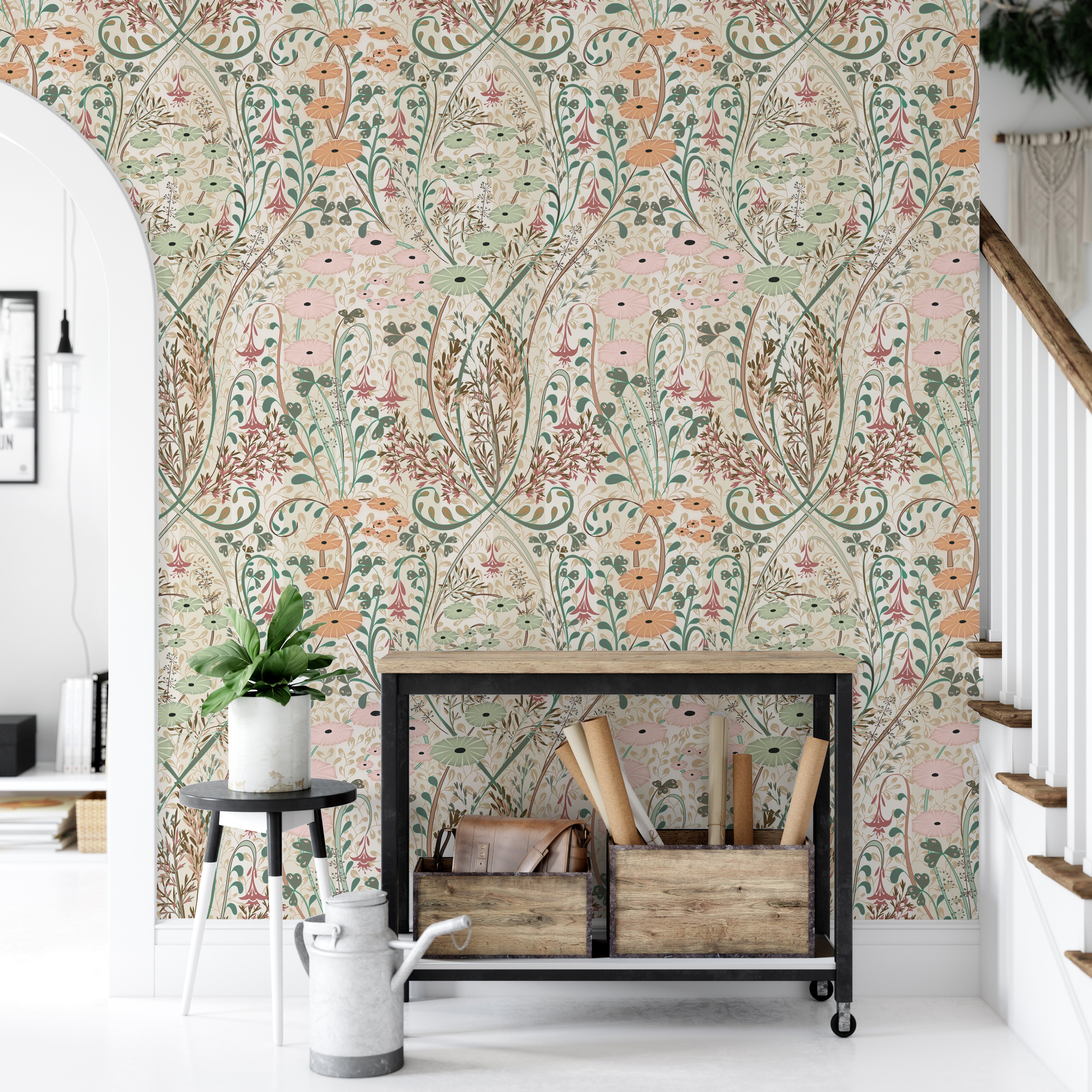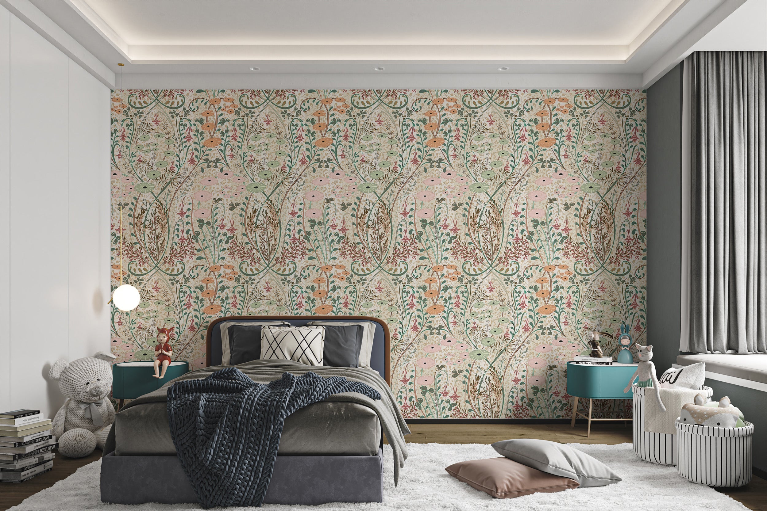 Immerse yourself in the aromatic allure of the enchanted garden wallpaper, a dining room adornment that brings a symphony of nature's charm to your feasts. Each roll unfurls a pattern where florals and greenery dance in harmony, crafting a visual feast as rich as the culinary delights served beside it. This dining room wallpaper is not just a backdrop it's a conversation starter, a stroke of design genius that infuses meals with the essence of a blooming meadow, turning everyday dining into a botanical celebration.