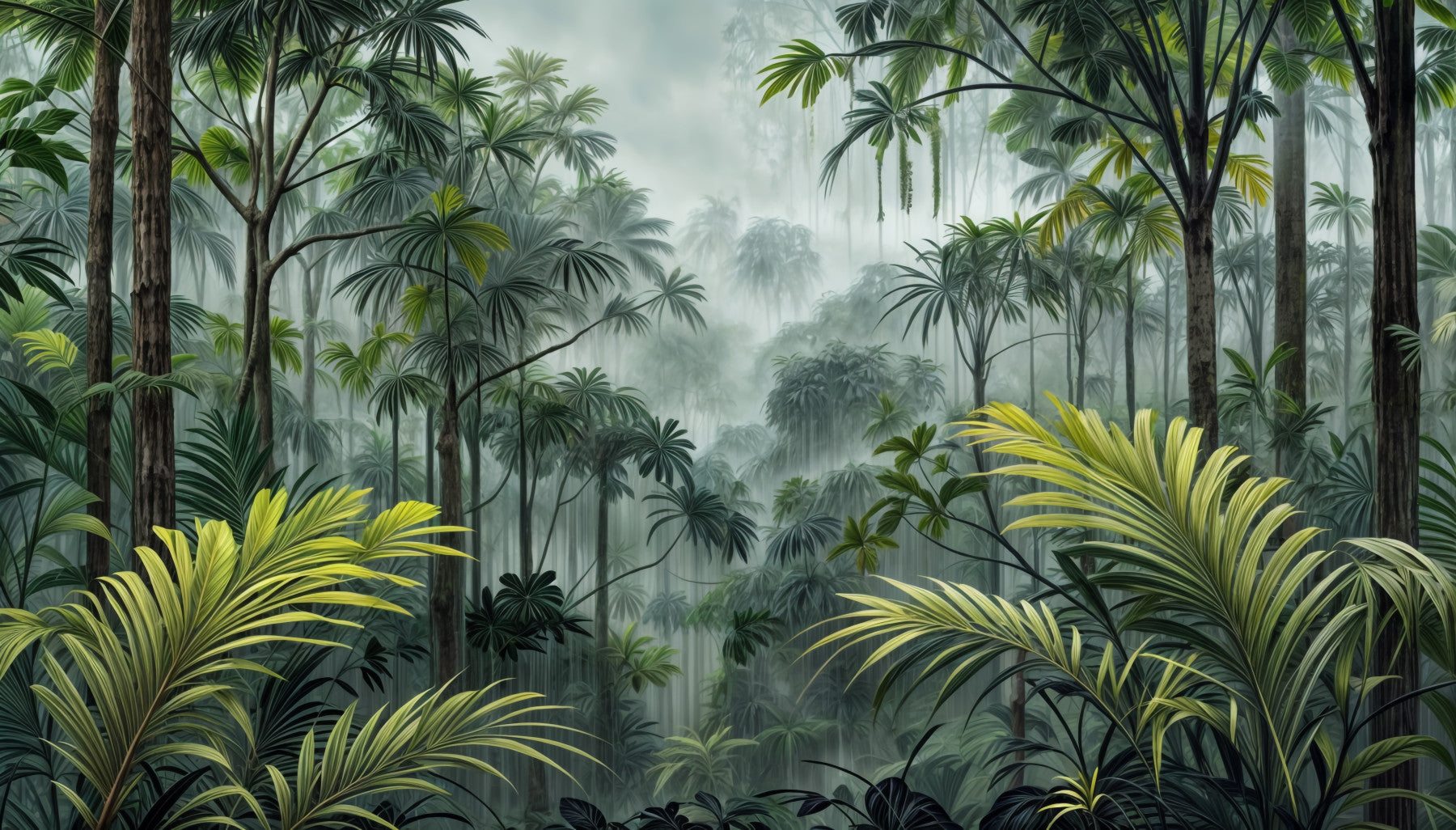 Rainforest mural with layered greenery