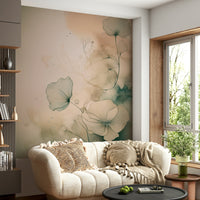 Embrace understated elegance with this beautiful wallpaper for walls. The design presents delicate floral outlines gently merging with watercolor washes. Soft greens, tans, and hints of blue create a light and airy feel. This wallpaper works wonders in a bedroom, living area, or even a home office, imparting a sense of peace and refined style. Its gentle aesthetic complements minimalist and boho-chic interiors, adding a touch of nature's grace to your space.