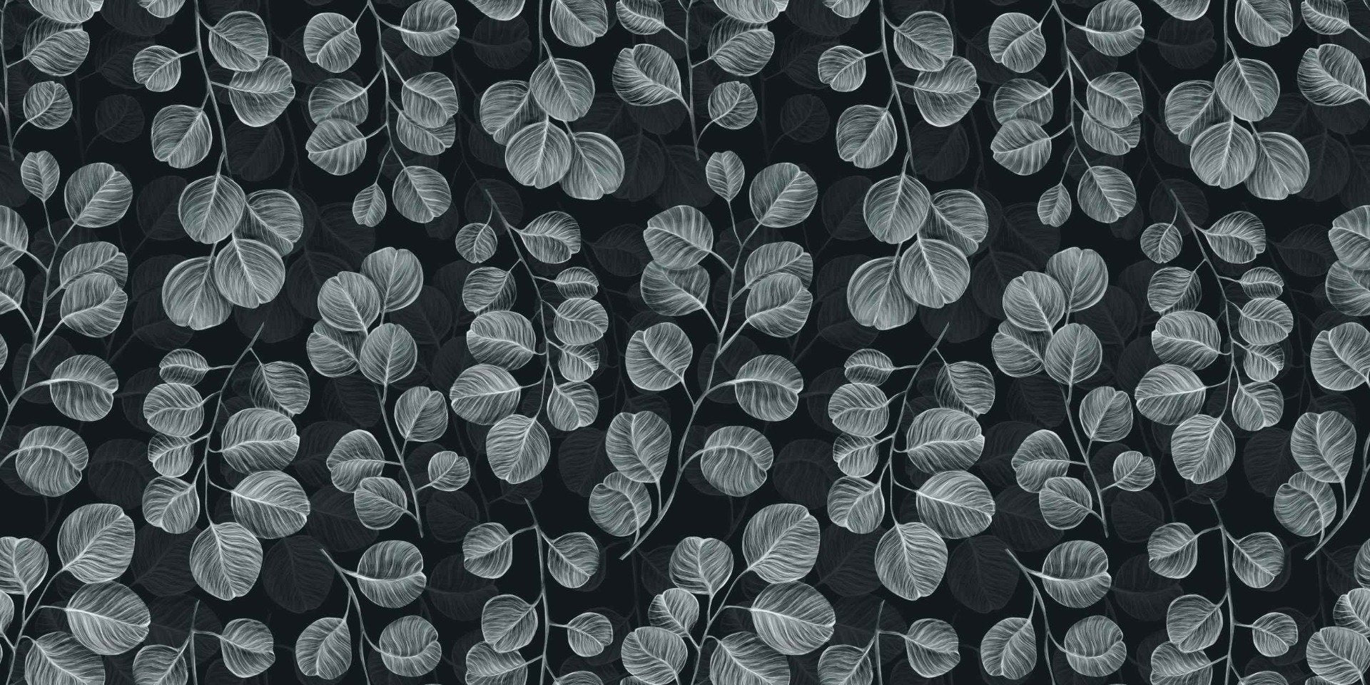 Elevate your space with the serene elegance of our Eucalyptus Gray Leaves wallpaper mural. Expertly designed to bring a touch of nature indoors, the mural features a botanical pattern of lustrous silver dollar eucalyptus leaves set against a sophisticated dark backdrop. Its vintage graphic style infuses any room with a fresh, international flair, making it an ideal choice for creating a distinguished feature wall. The high-quality print of this gray leaf wallpaper mural lends an air of luxury and tranquility to your home or office. Perfect for those seeking to add a refined yet natural aesthetic to their interior decor, this gray wallpaper mural is not just a visual delight but a statement of style.