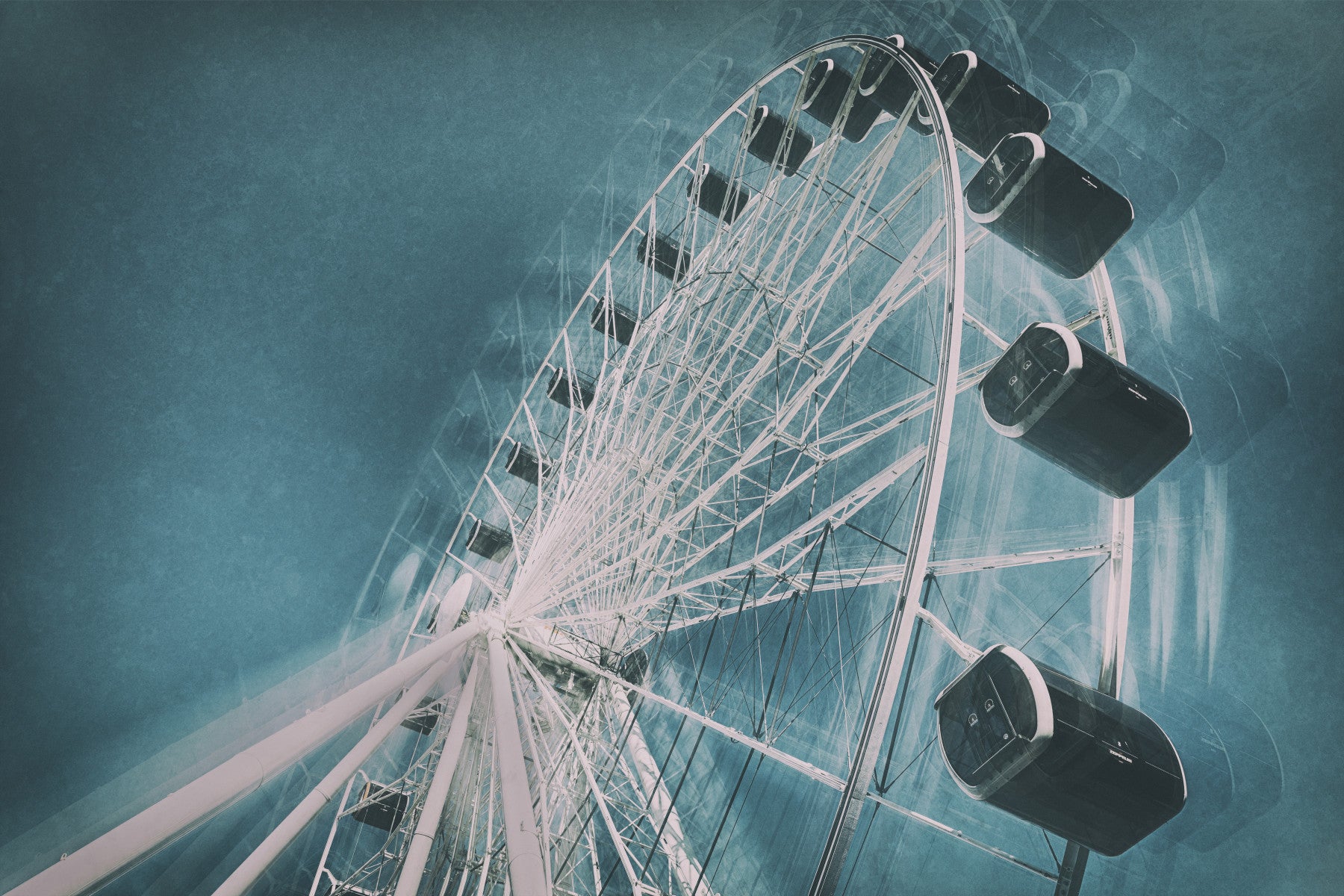 Lose yourself in the serene spectacle of "Ferris Wheel Sky Gaze." This wallpaper captures a unique perspective, looking upwards at a majestic Ferris wheel reaching for the heavens. The artwork blends structural steel and airy sky in a harmonious dance, evoking a sense of wonder and tranquility. The muted, vintage-inspired color palette casts a dreamlike quality over the scene, transforming your screen into a portal for contemplation. The intricate lattice of the Ferris wheel's framework contrasts beautifully with the vast expanse of the sky, offering a captivating focal point. Perfect for those seeking a blend of urban architecture and natural beauty, "Ferris Wheel Sky Gaze" is more than just a wallpaper – it's an invitation to pause, breathe, and appreciate the simple elegance of a Ferris wheel against the backdrop of an endless sky.