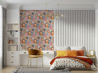 Transform your space with 'Floral Bears' Den,' an endearing wallpaper for walls that blends nature and animal motifs. This design showcases bears among abstracted flowers and foliage in a soft, inviting palette of pinks, oranges, blues and browns. This wallpaper infuses warmth into any space. The design's gentle aesthetic makes it ideal for kids' rooms, bedrooms, or playrooms. It pairs well with light wood furniture and pastel decor, bringing a touch of the outdoors inside.