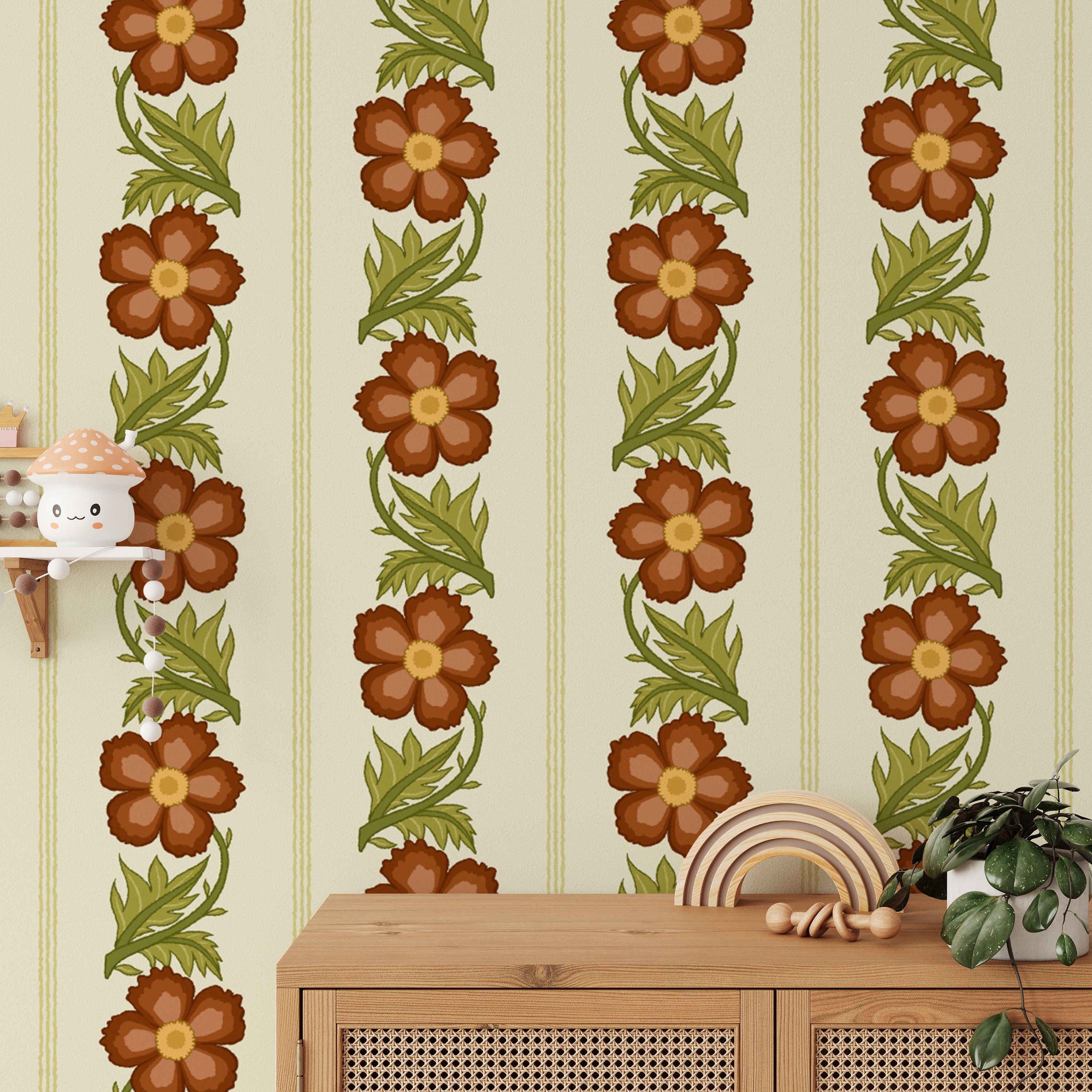 Introducing our floral stripe red wallpaper—a timeless addition to any room. This unique design seamlessly blends elegant flowers with classic stripes, creating a pattern that is both sophisticated and visually appealing. The rich red hues of the floral motifs stand out beautifully against the subtle striped background, making it an ideal choice for those who appreciate vintage charm with a modern twist. Whether you're looking to refresh a bedroom, living room, or hallway, this wallpaper offers the perfect solution. Its durable material ensures long-lasting beauty. Secure yours today and bring this timeless floral stripe design into your home.
