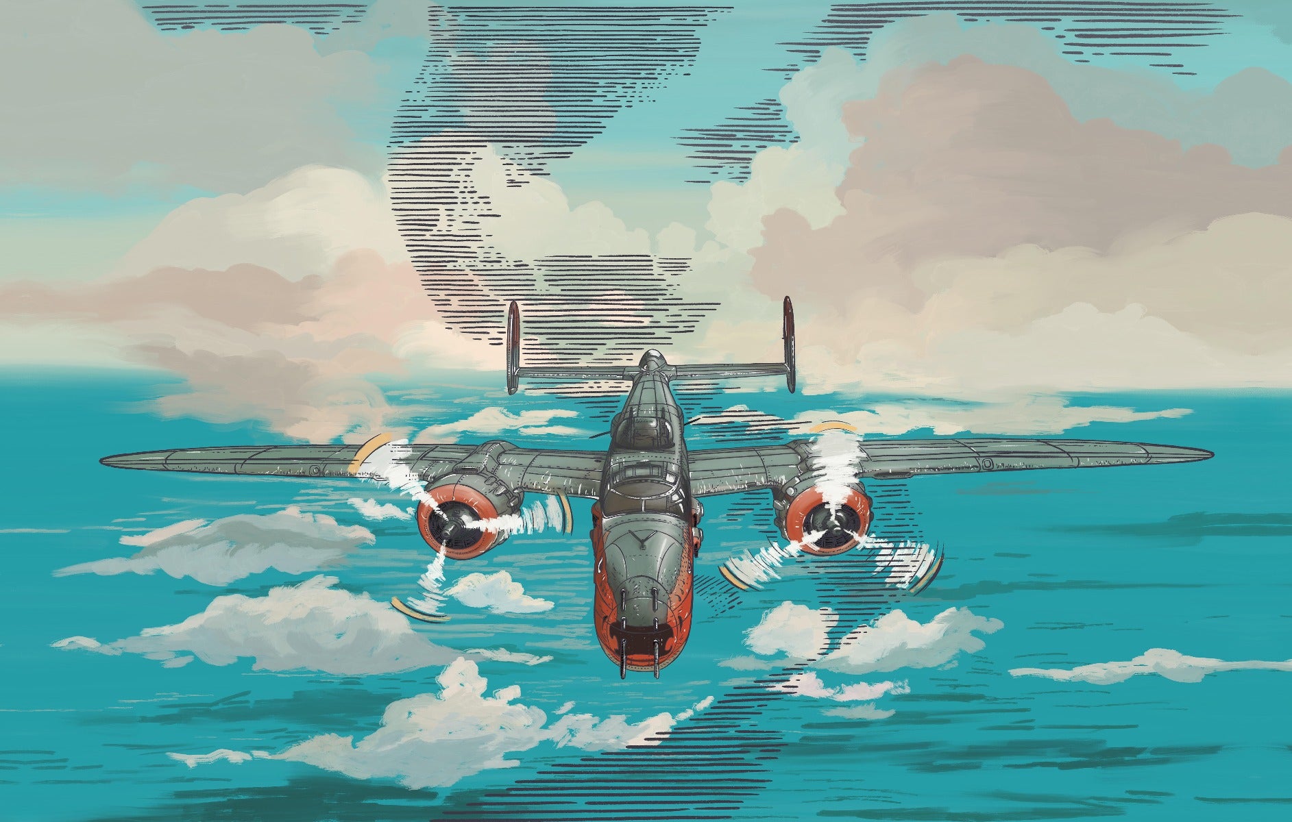 Blue ocean and flying plane wallpaper design