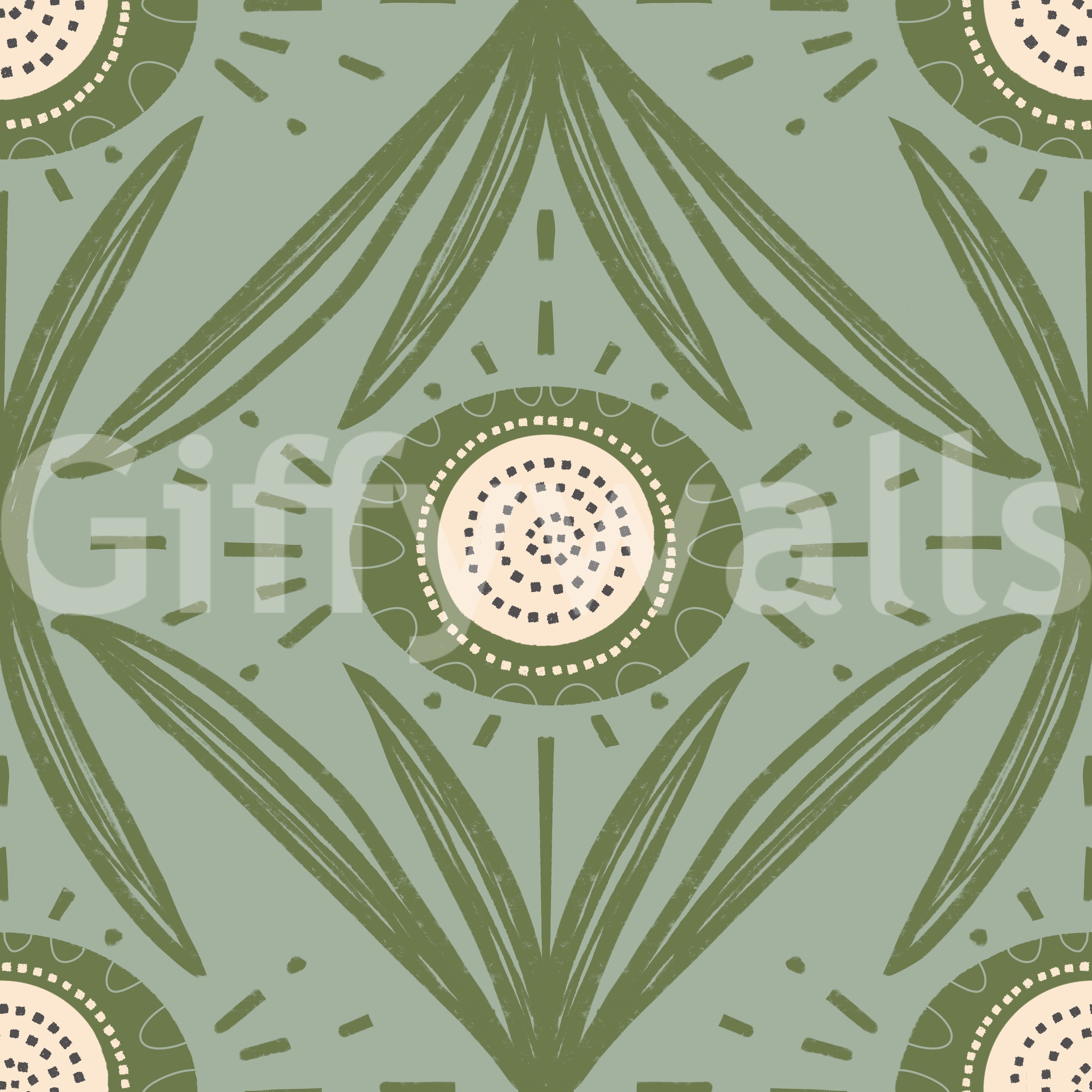 Folk Bloom Radiance Olive Sage wallpaper design