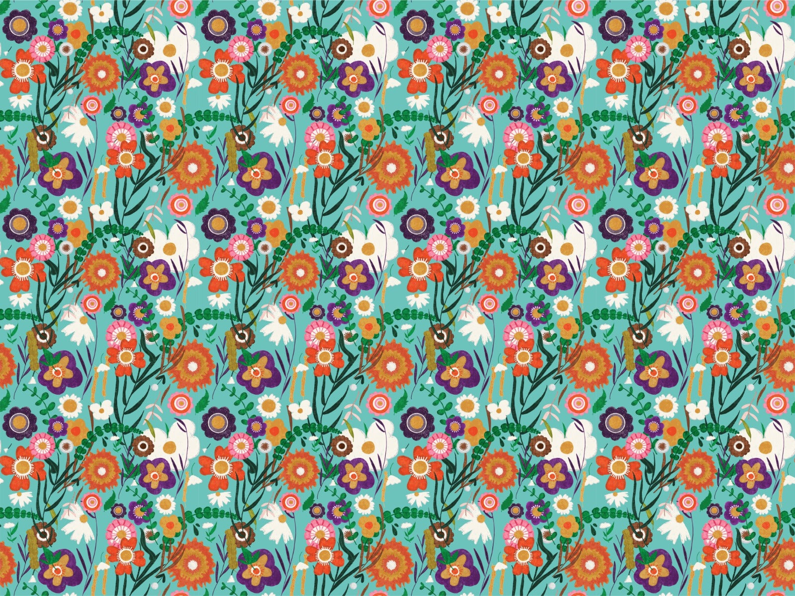 Handcrafted folk-style floral wallpaper for walls