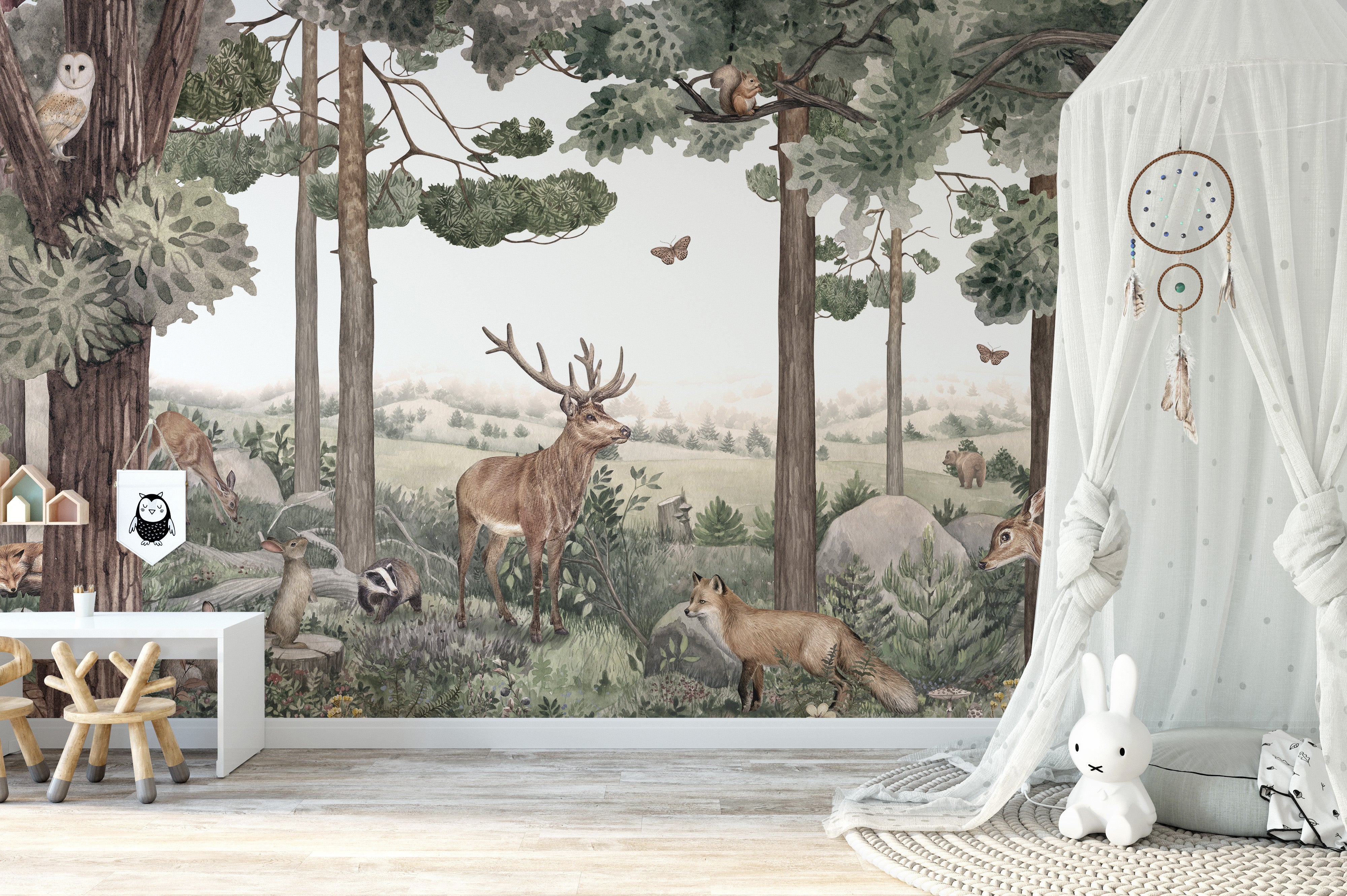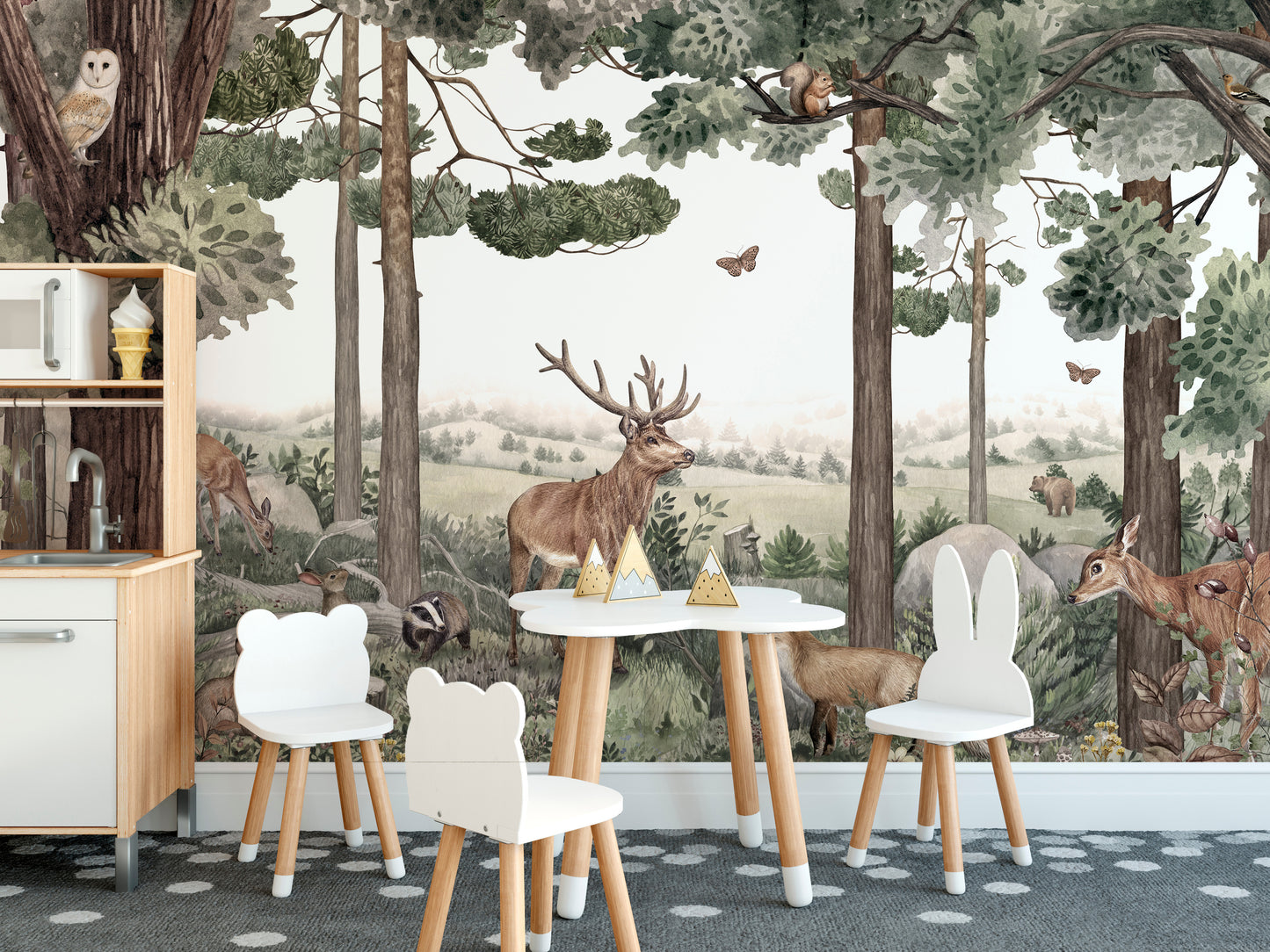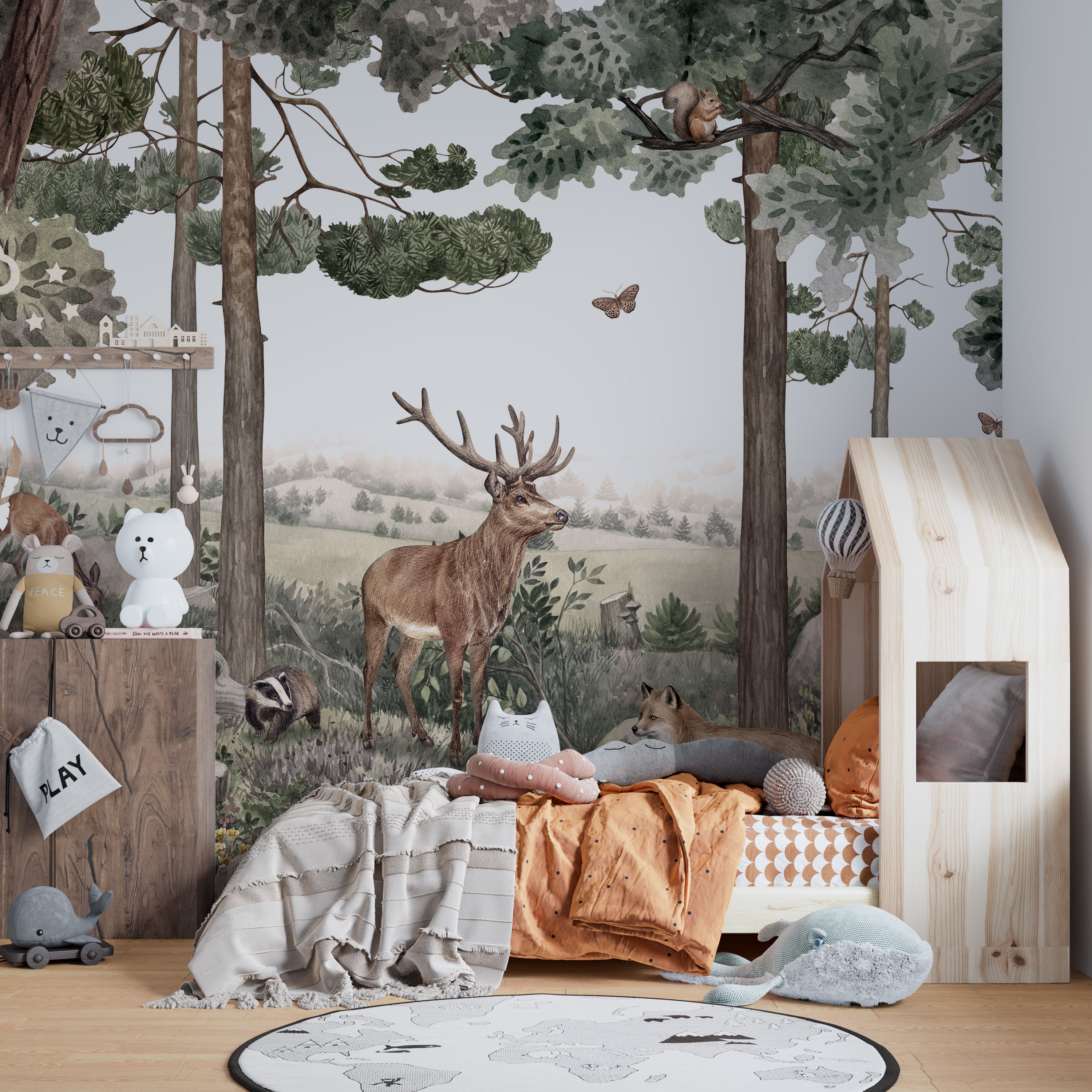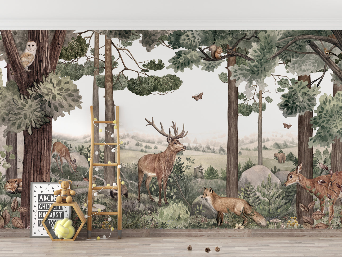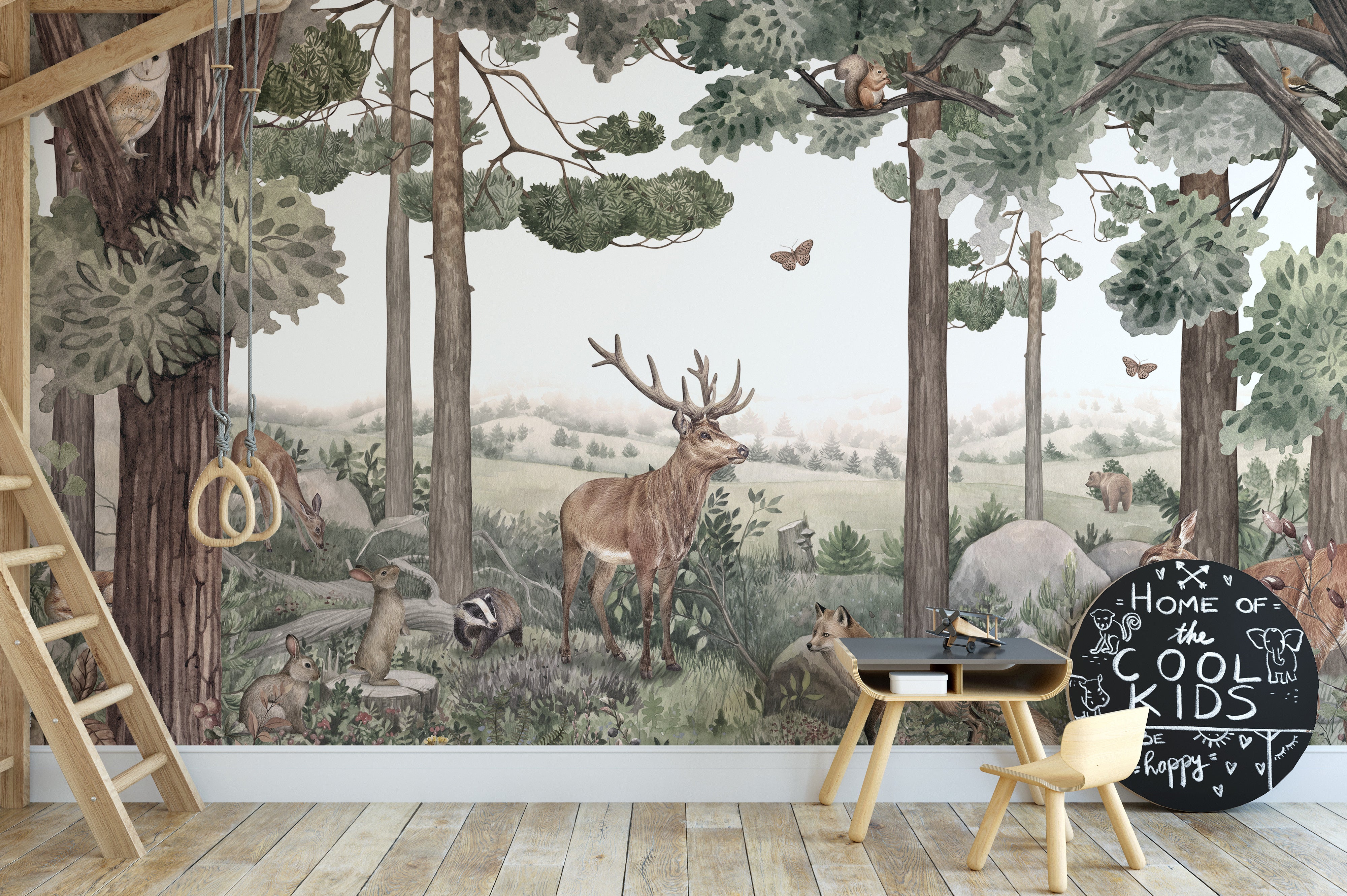 Forest Jive Stag and Deer Wallpaper Mural - Giffywalls
