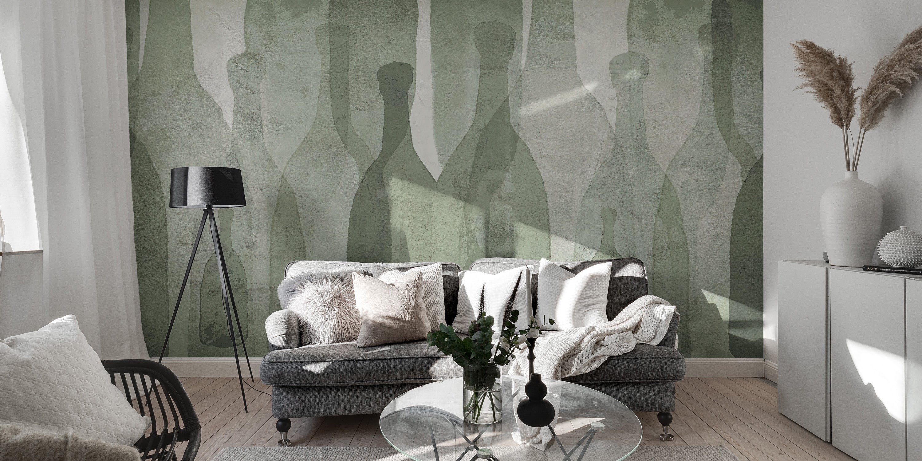 Artistic wallpaper featuring bottles in soft watercolor hues