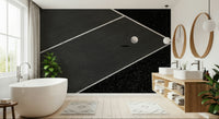 Embrace a sporty vibe with this minimalist court scene! Crisp white lines cut across a dark surface, creating a strong geometric design. A solitary ball adds a touch of playfulness. The monochrome palette makes it an elegant choice. Use this wallpaper for walls in your office or teen room to create a focused space. This design complements modern, urban, and geometric interiors.