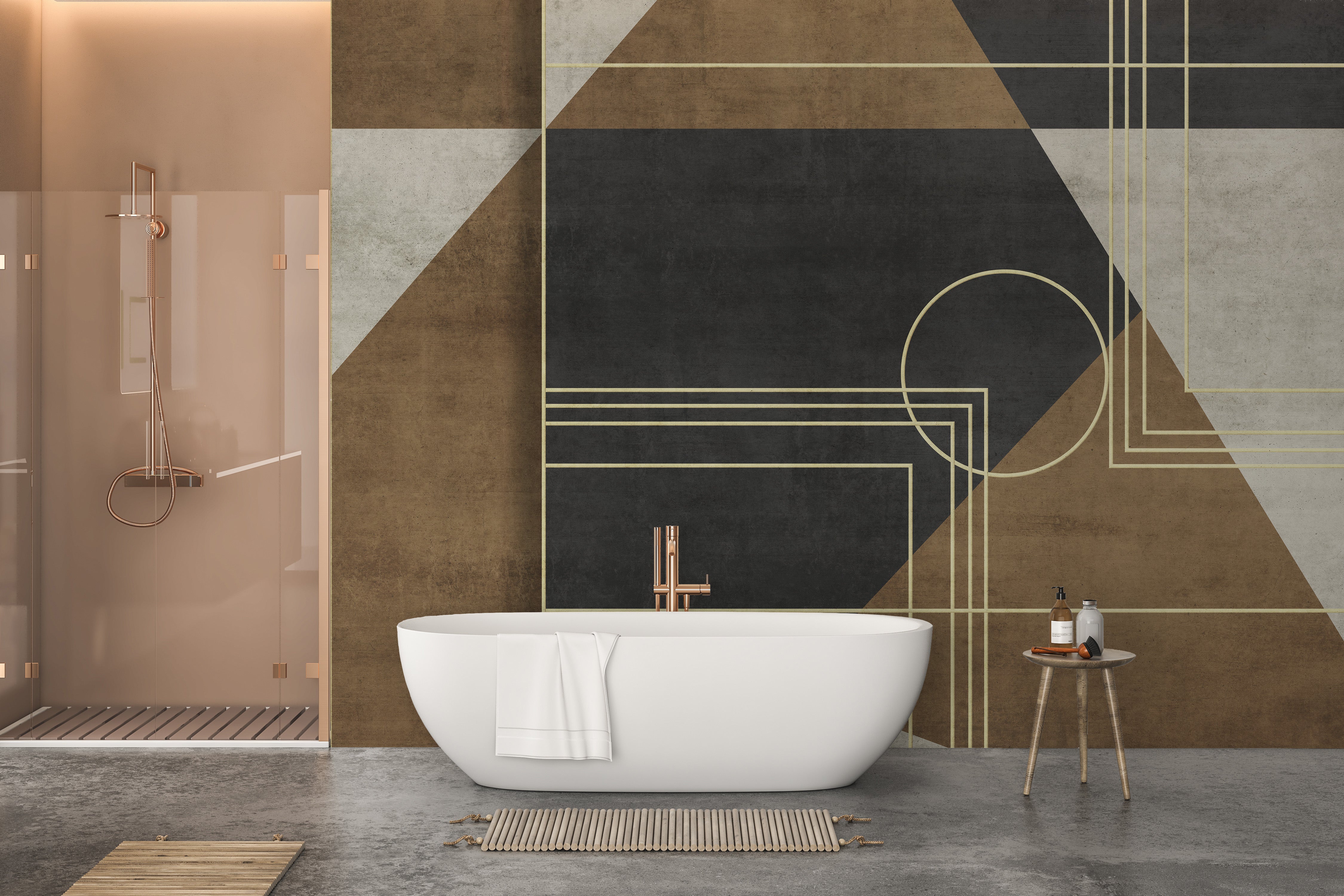 Bold geometric wallpaper in muted tones