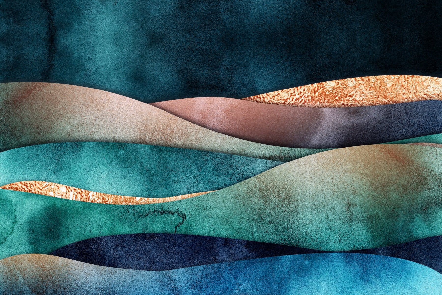 Bring a touch of sophistication to your space with this abstract landscape wallpaper. The blend of teal, rose, and indigo gradients creates depth, enhanced by gilded accents. This wallpaper for walls transforms living rooms, bedrooms, and offices into serene retreats. Its unique design complements interiors by introducing texture and a sense of calm.