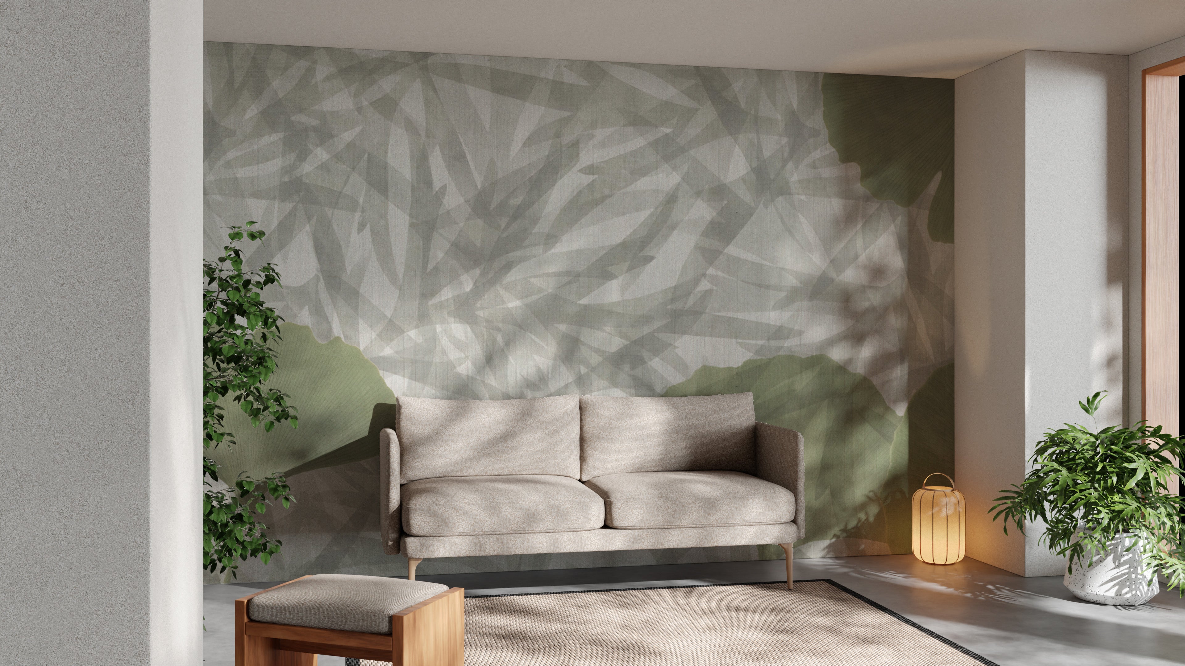 Textured botanical wall mural for a natural ambiance