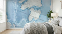 Arctic-inspired wall mural with glacial textures and cool blue gradients for a refreshing wall accent.