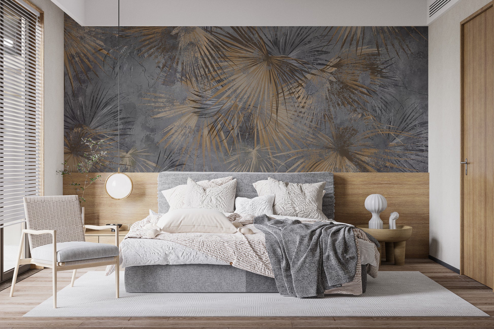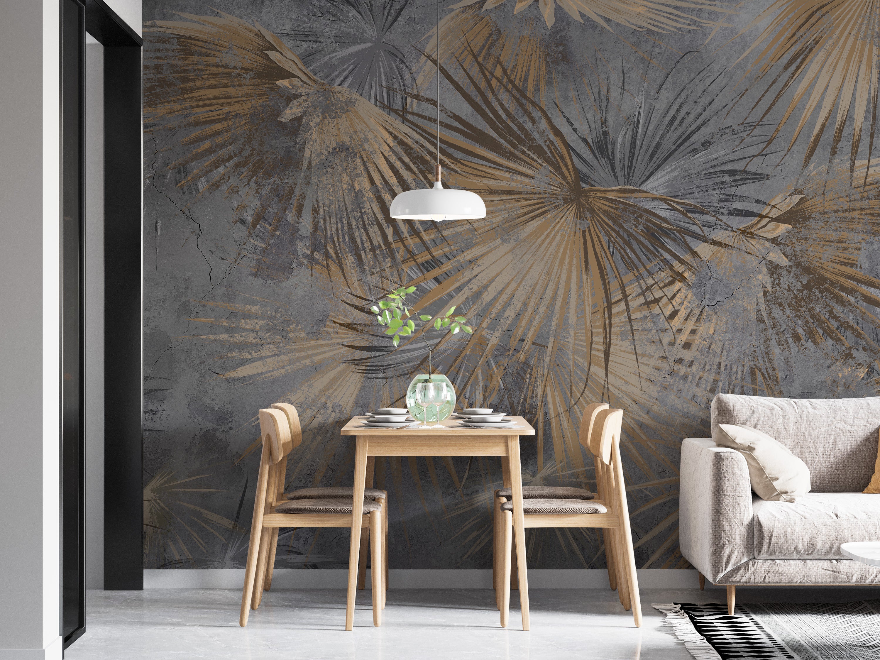 Elegant mural with gold and slate fronds