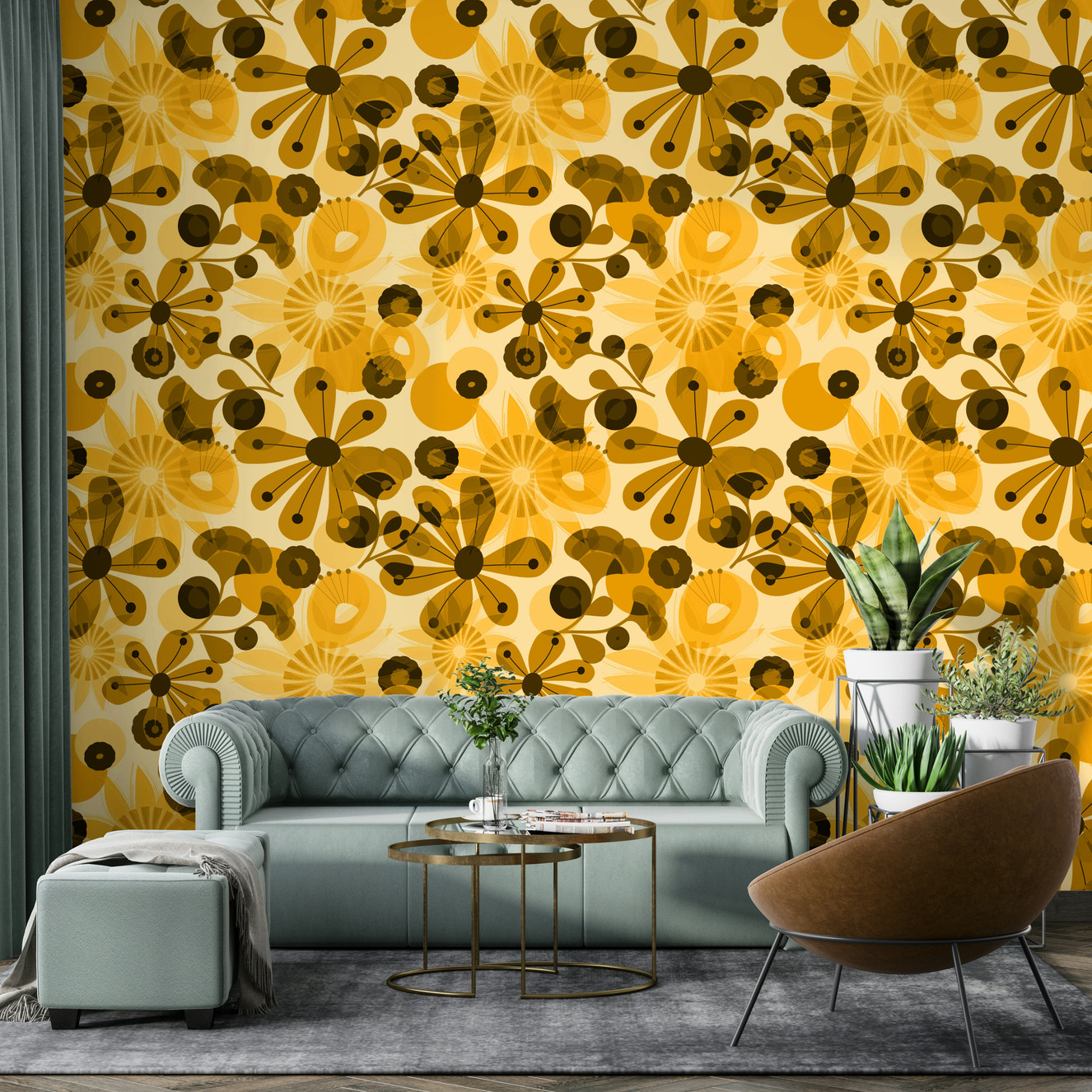 Artistic yellow floral wallpaper for walls