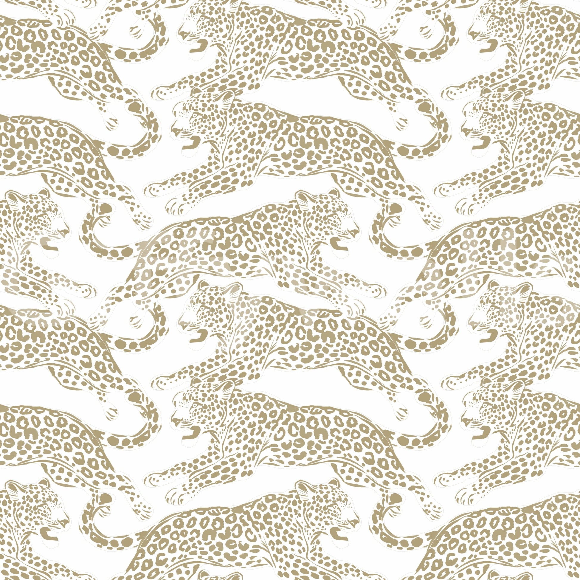 This design captures the wild beauty of leopards in motion. The pattern features repeated jaguar motifs in a rich golden hue against a crisp white backdrop. Perfect for a bold statement in a living room, bedroom, or hallway. Elevate your interior design with this pattern. This wallpaper for walls brings a touch of the exotic inside. It pairs nicely with minimalist decor, adding richness without overpowering the space. Imagine this in a study, invoking focus and natural strength.