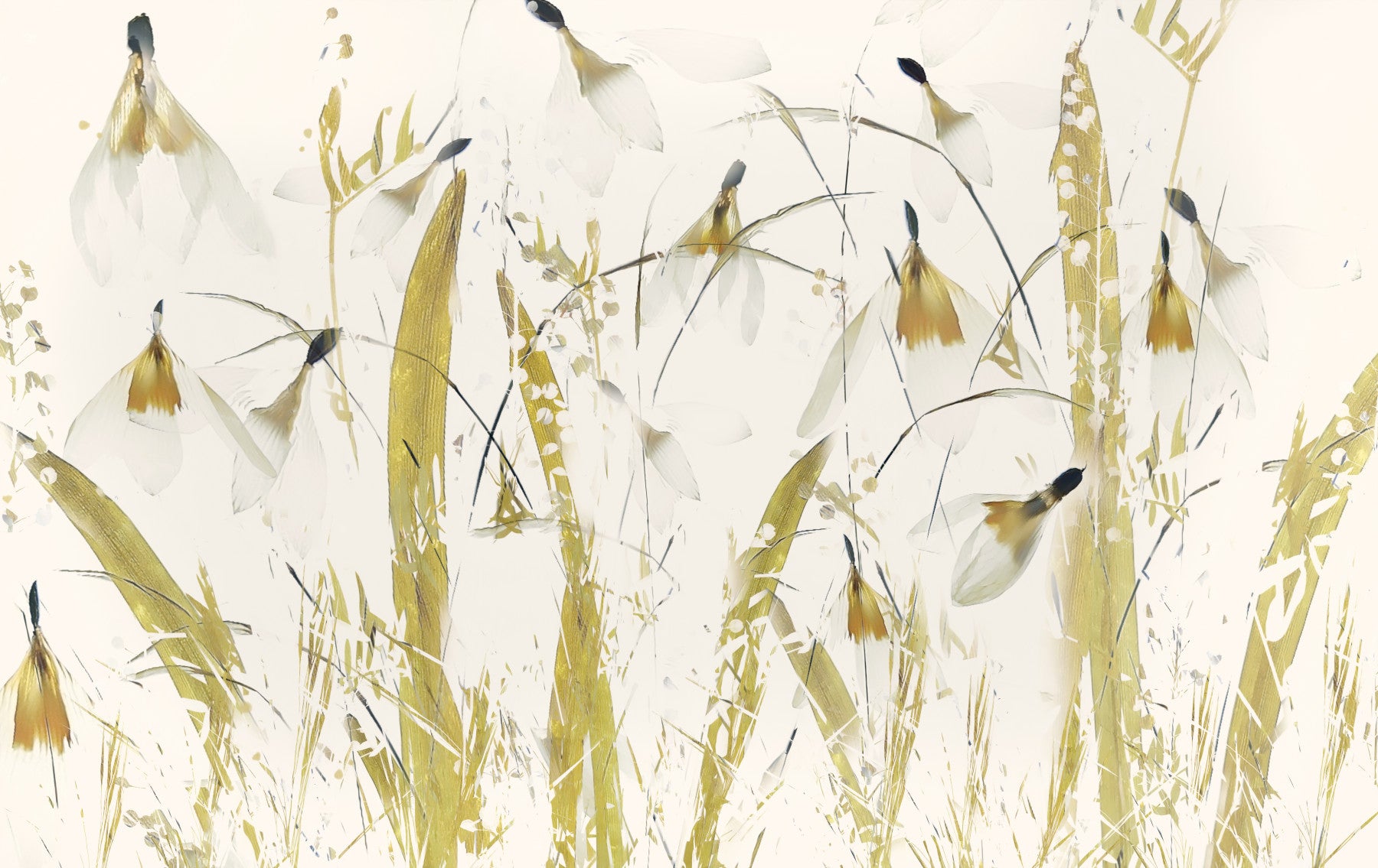 Create a calming sanctuary. This captivating wallpaper for walls showcases stylized golden grasses and ethereal white blooms. The gentle design brings a touch of nature's understated beauty into your home. Soft, natural tones enhance the peaceful mood, perfect for a bedroom or living room. The understated color palette works beautifully in various interior styles, adding a subtle yet sophisticated touch to your space.