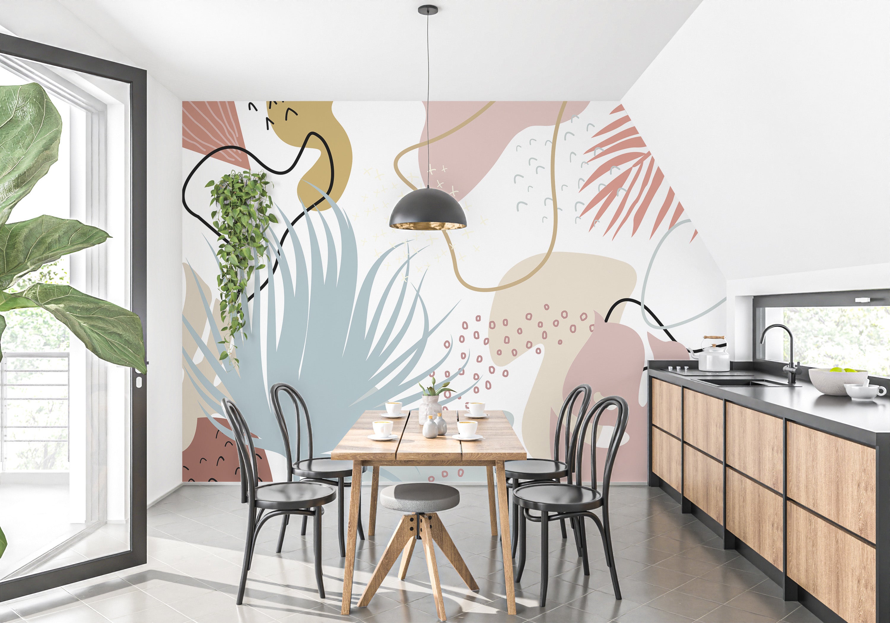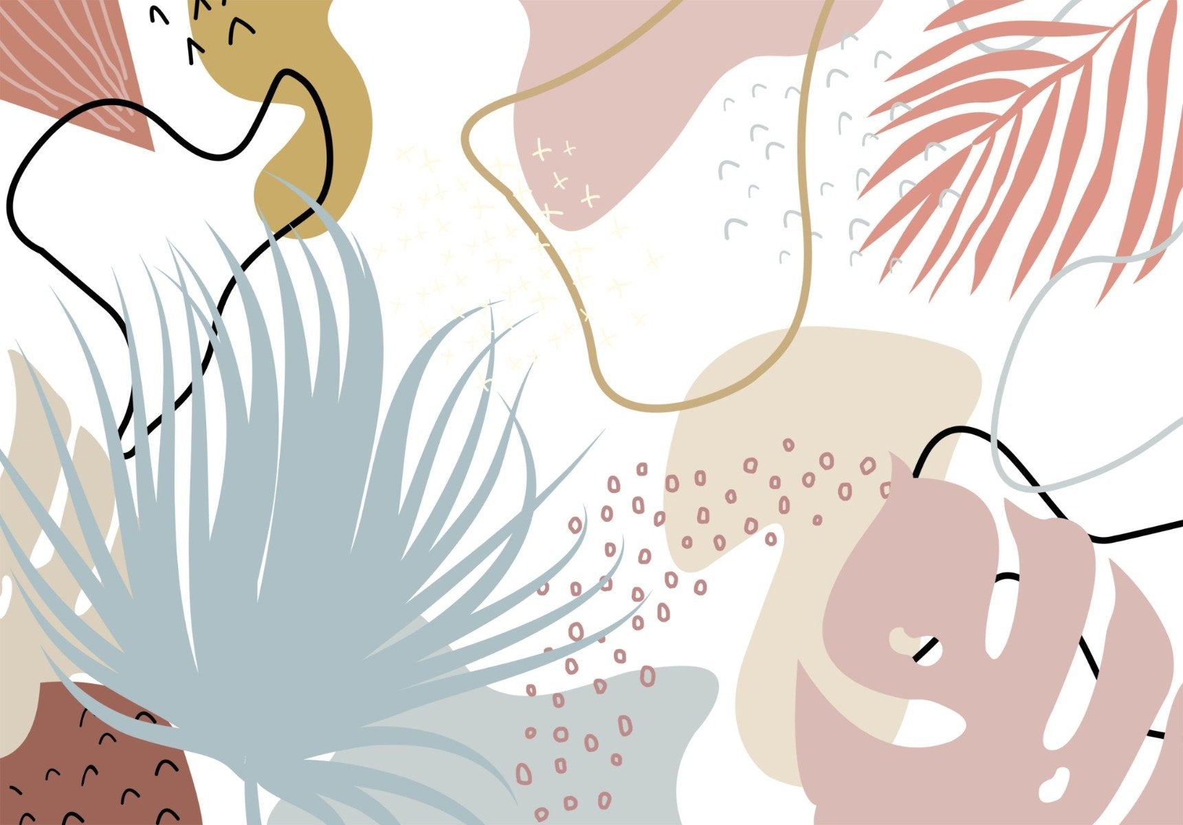 Modern botanical wallpaper with artistic leaf patterns.