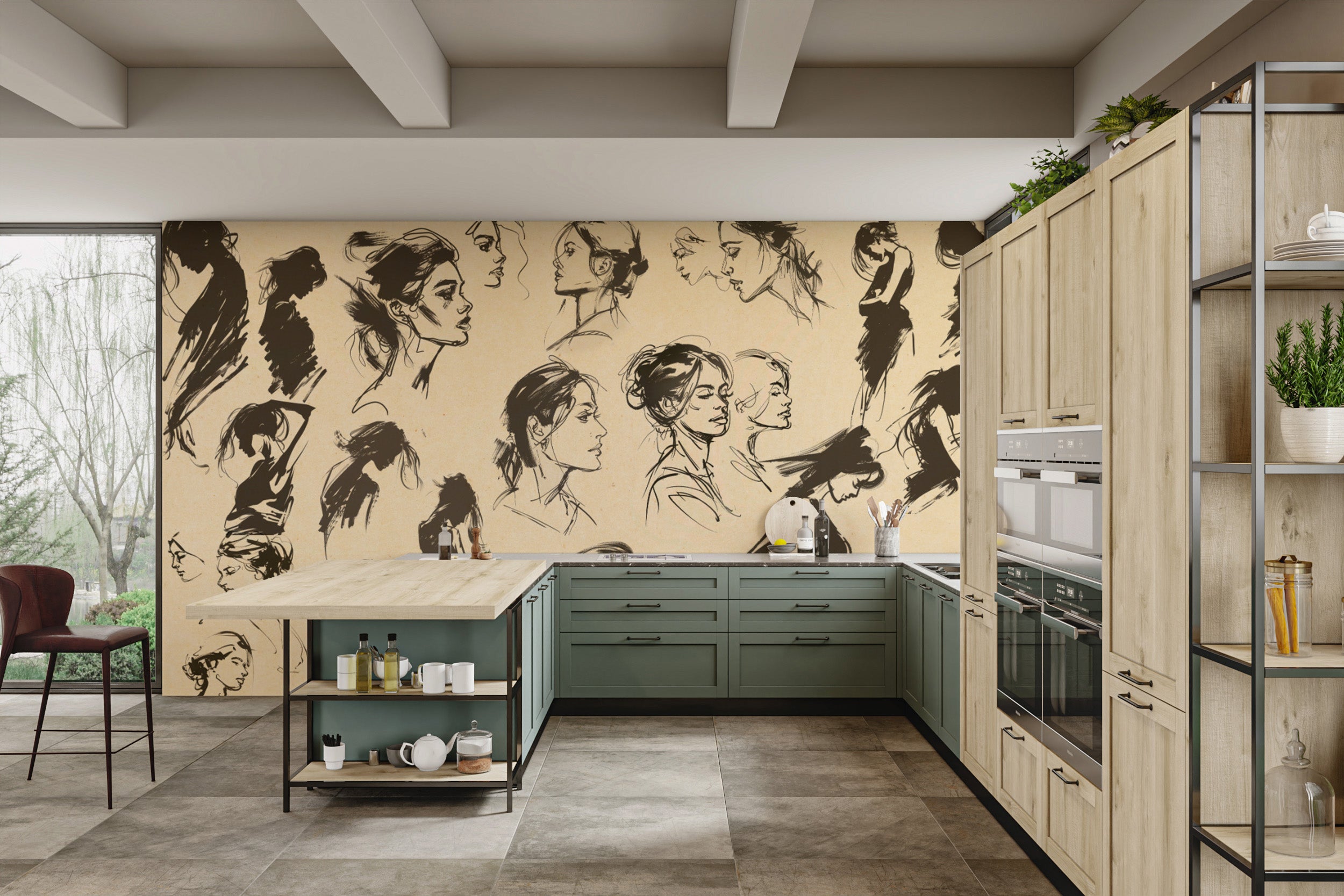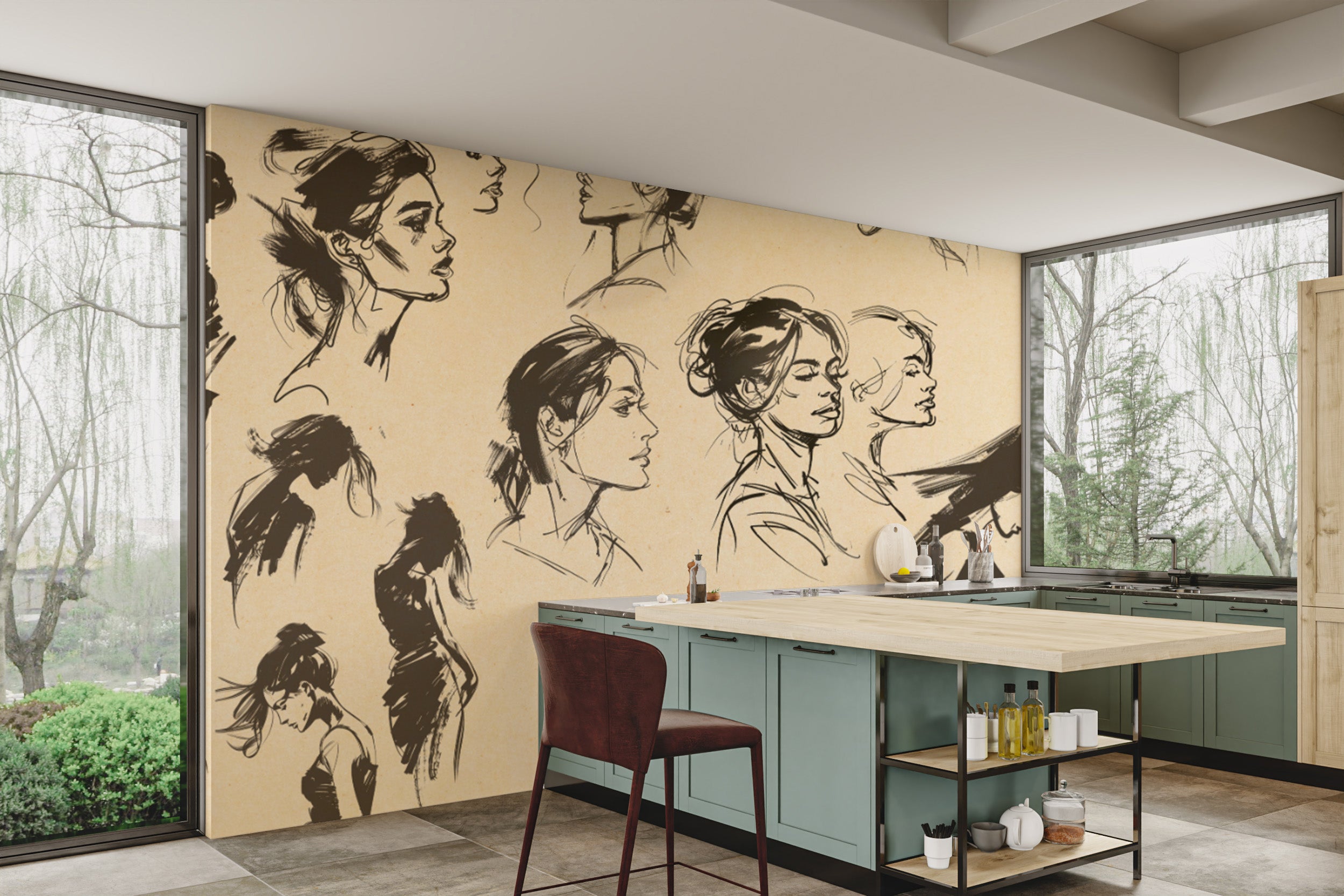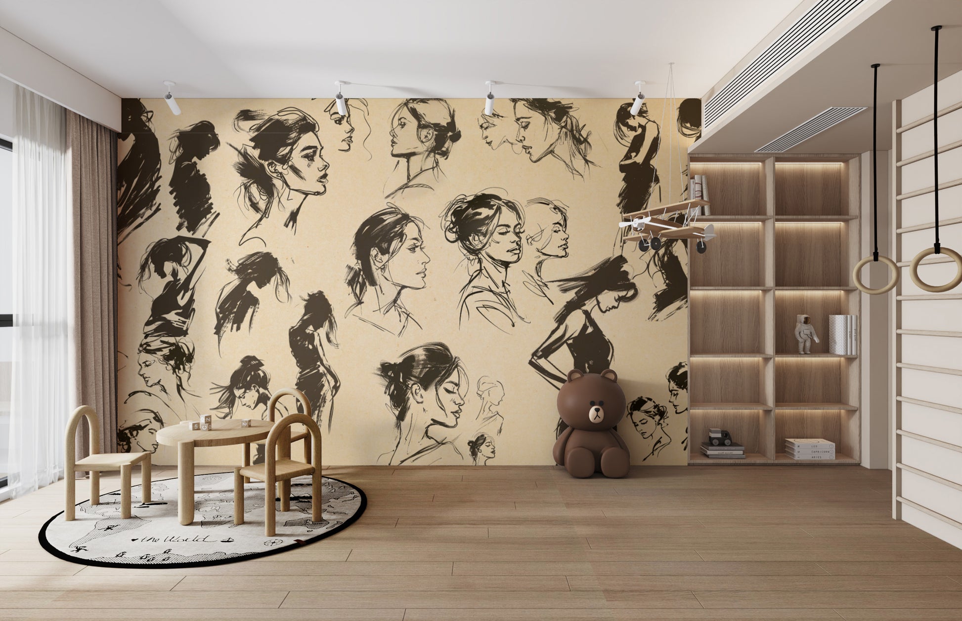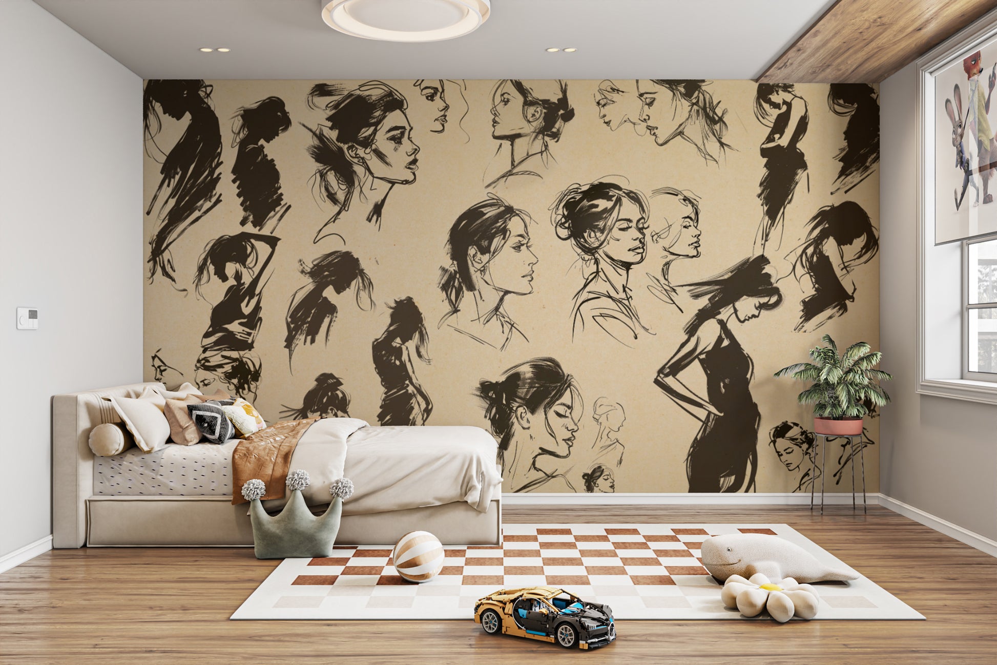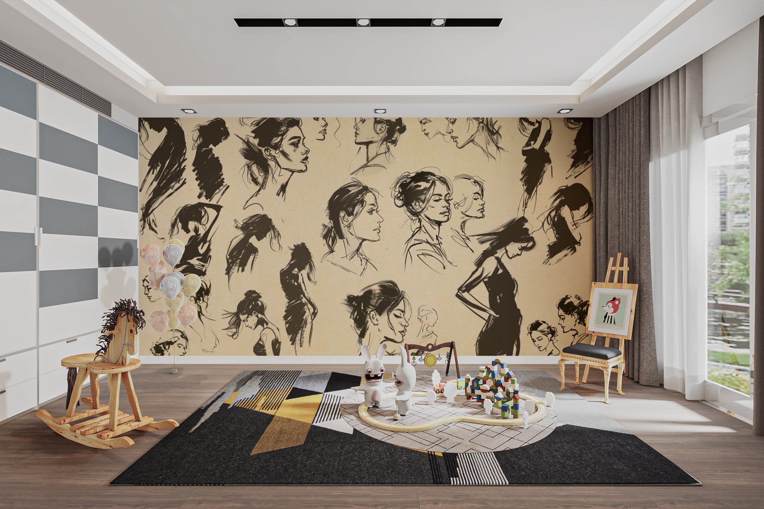 Grace in Black wallpaper adds a touch of artistry to your pleasure. Gracefully merging charm and expression, this design features delicate ink sketches of female silhouettes in motion and emotion embellished with bold strokes and fine-line detailing. The monochrome art against a neutral backdrop creates a modern yet sophisticated look these days and effortlessly fits into modern interiors, studios, or creative spaces. Whichever way this wallpaper joins in, be it that of an elegant living room or inspiring the energy of creativity within your walls, one will obtain a graceful statement with depth and ageless charm. Welcome this unusual statement piece that manifests beauty and deftness of artistry into your décor.
