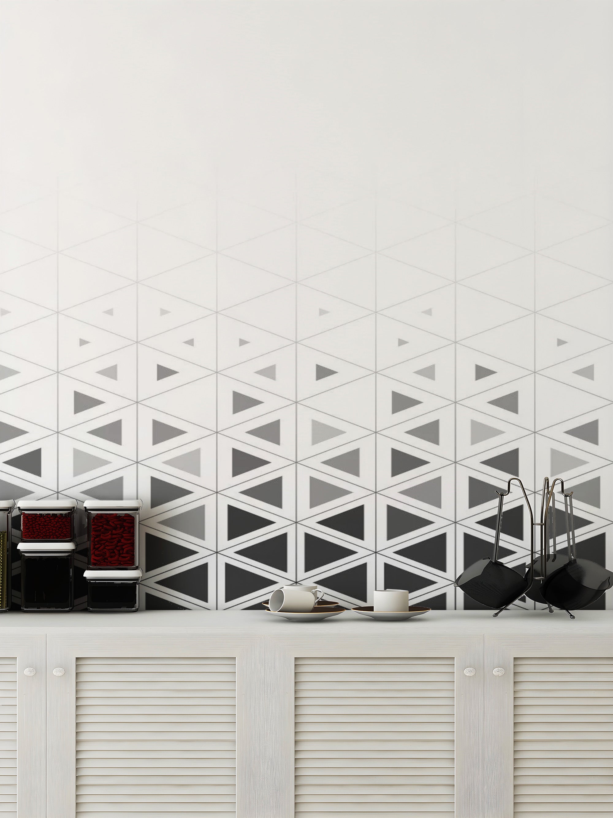 Revamp your space with our gorgeous geometric wallpaper mural, the perfect addition to your home decor arsenal. As the newest trend in feature walls, this geometric pattern adds a striking touch to any room. Designed for those who appreciate modern interior design and wall improvement, our wallpaper is not only stunning but also eco-friendly, made from 100% natural materials.