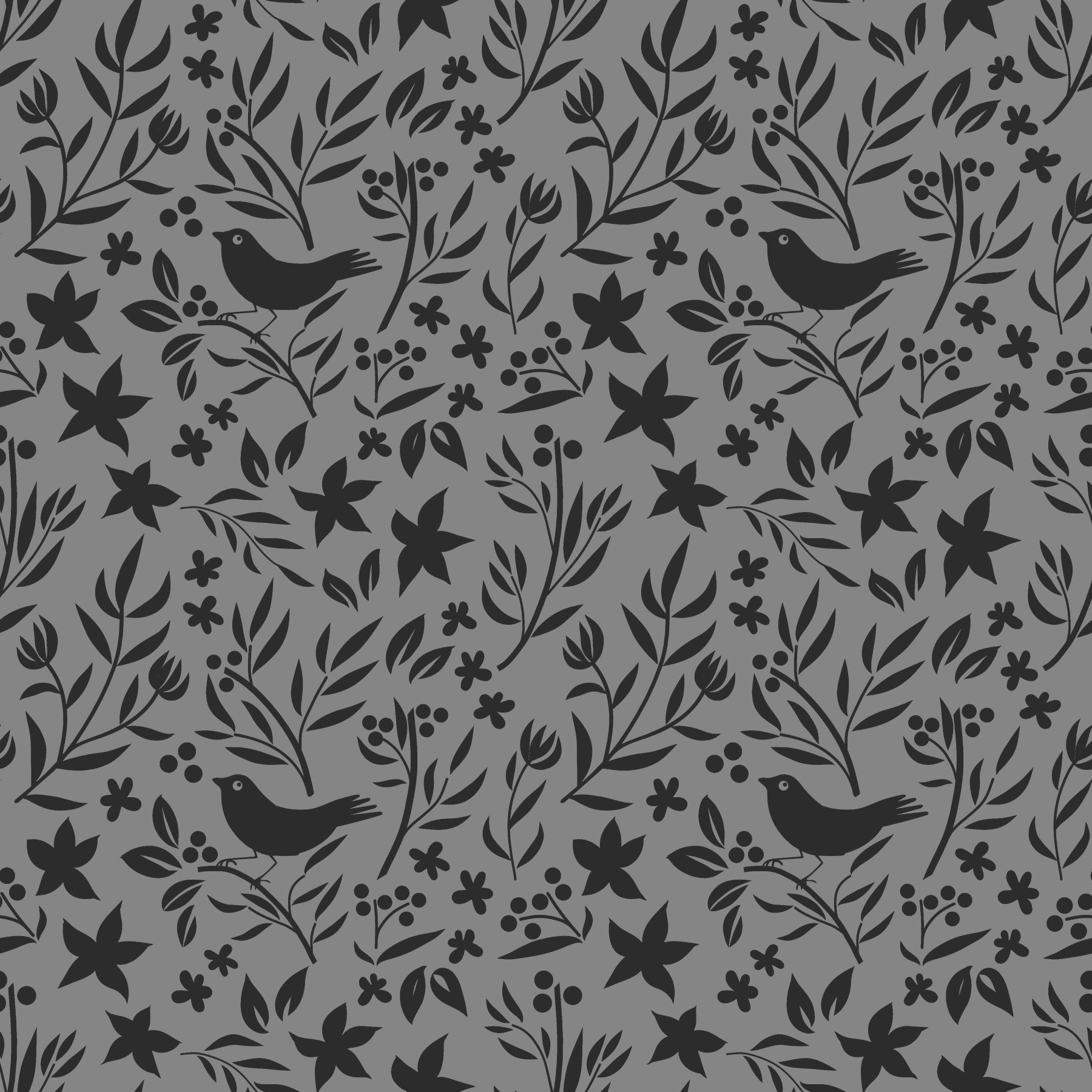 Gray Scandinavian Folk Bird Botanical Theme Wallpaper⁠