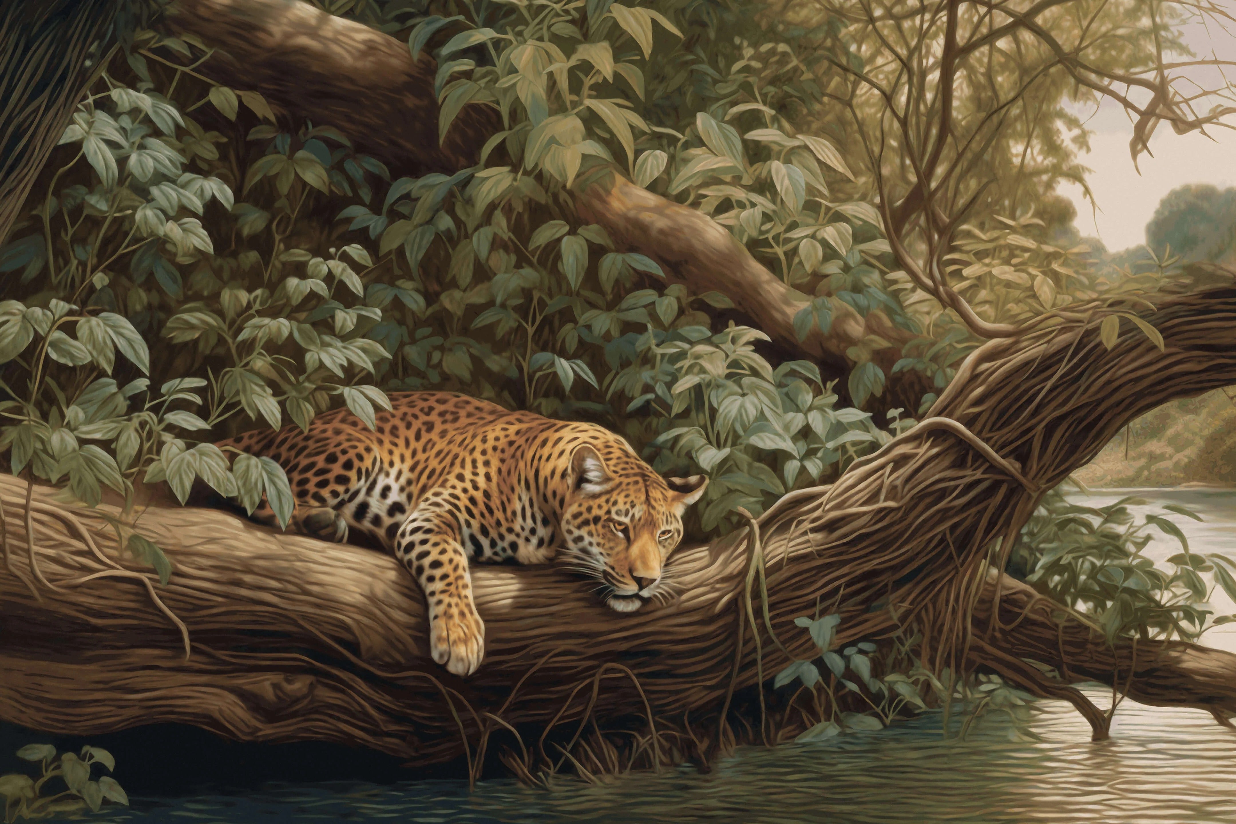 This green jungle leopard wallpaper brings the beauty of wildlife into your space. The wallpaper showcases a majestic leopard resting on a tree branch in a lush jungle setting, creating a captivating focal point in any room. This wallpaper is perfect for nature enthusiasts and those looking to add a bold statement to their walls. The intricate details and realistic design transport you to the heart of the jungle, offering a unique and immersive experience. Enhance your living space with this stunning wildlife wallpaper, perfect for bedrooms, living rooms, or offices. Invest in this eye-catching design and enjoy free shipping.